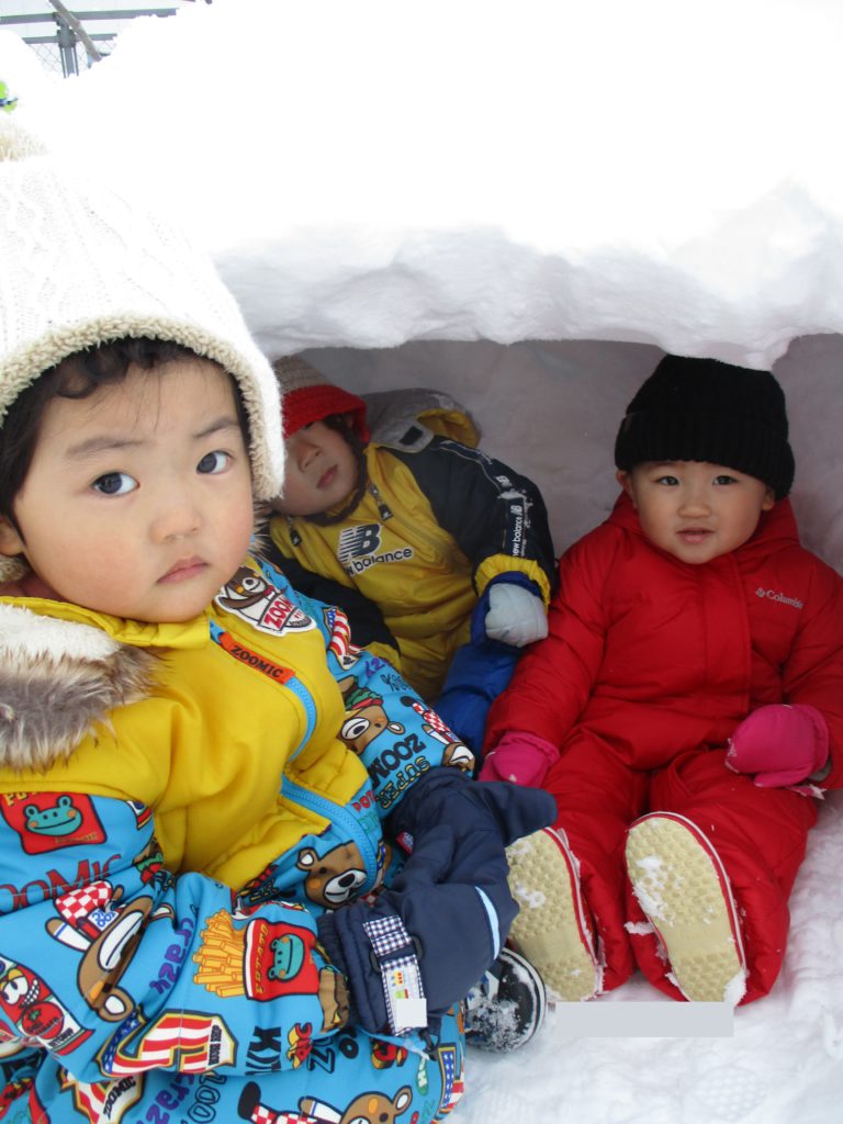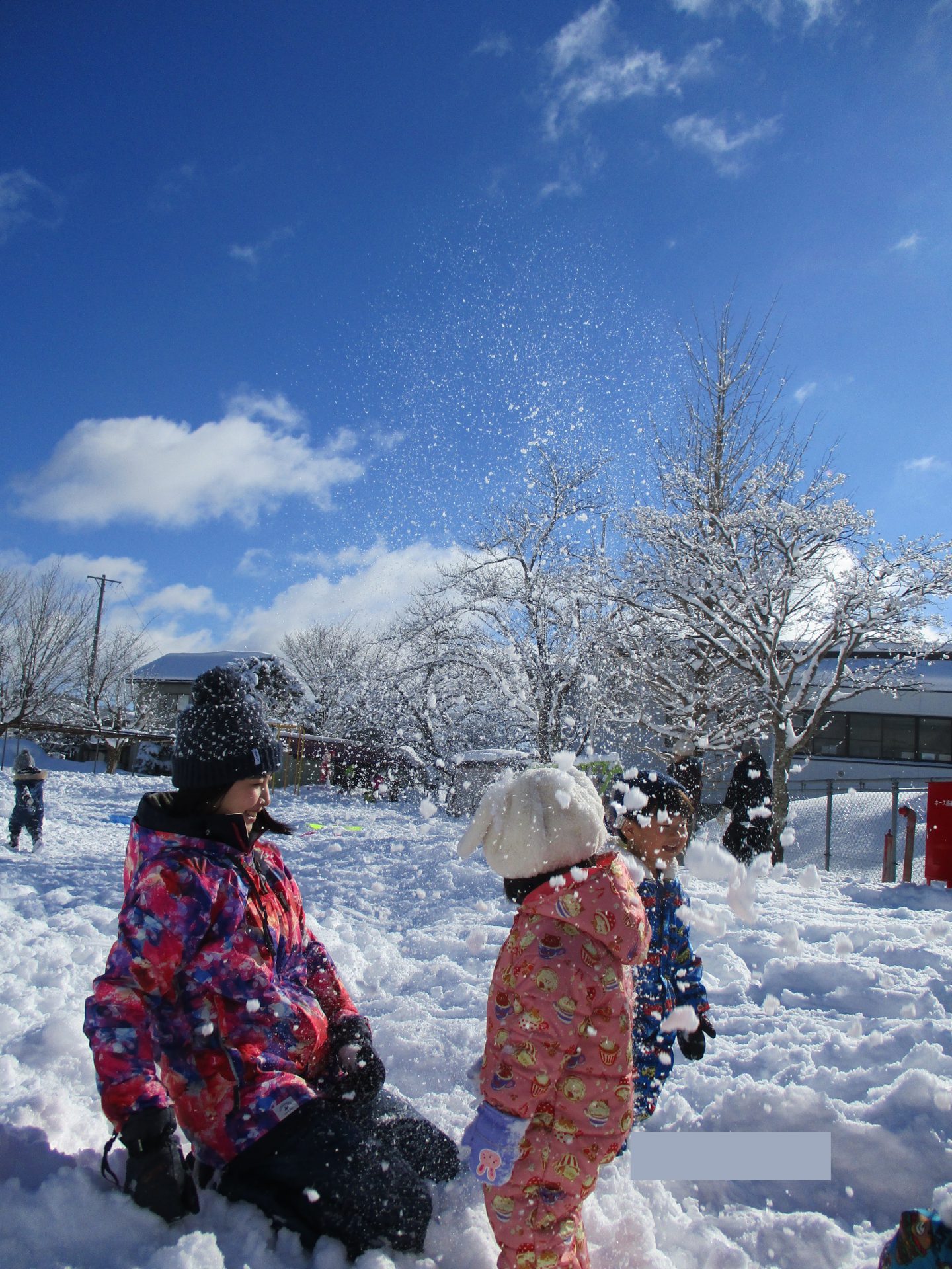 雪は、多くの遊び、感情、力を生み出します。雪に触れてみる→五感をフルにつかう→感情が溢れ出す→言葉や表情、身体全体で思いを伝える→共感する→一緒に遊ぶ→遊びの発展、などという「雪」を通して、力が連鎖していく様子が感じ取れました。また、雪は歩くだけでも体を想像以上につかいます。子どもたちの姿を通して、身体面、精神面ともに子どもたちの力が自然と高まる雪は、とても重要なものであると感じました。