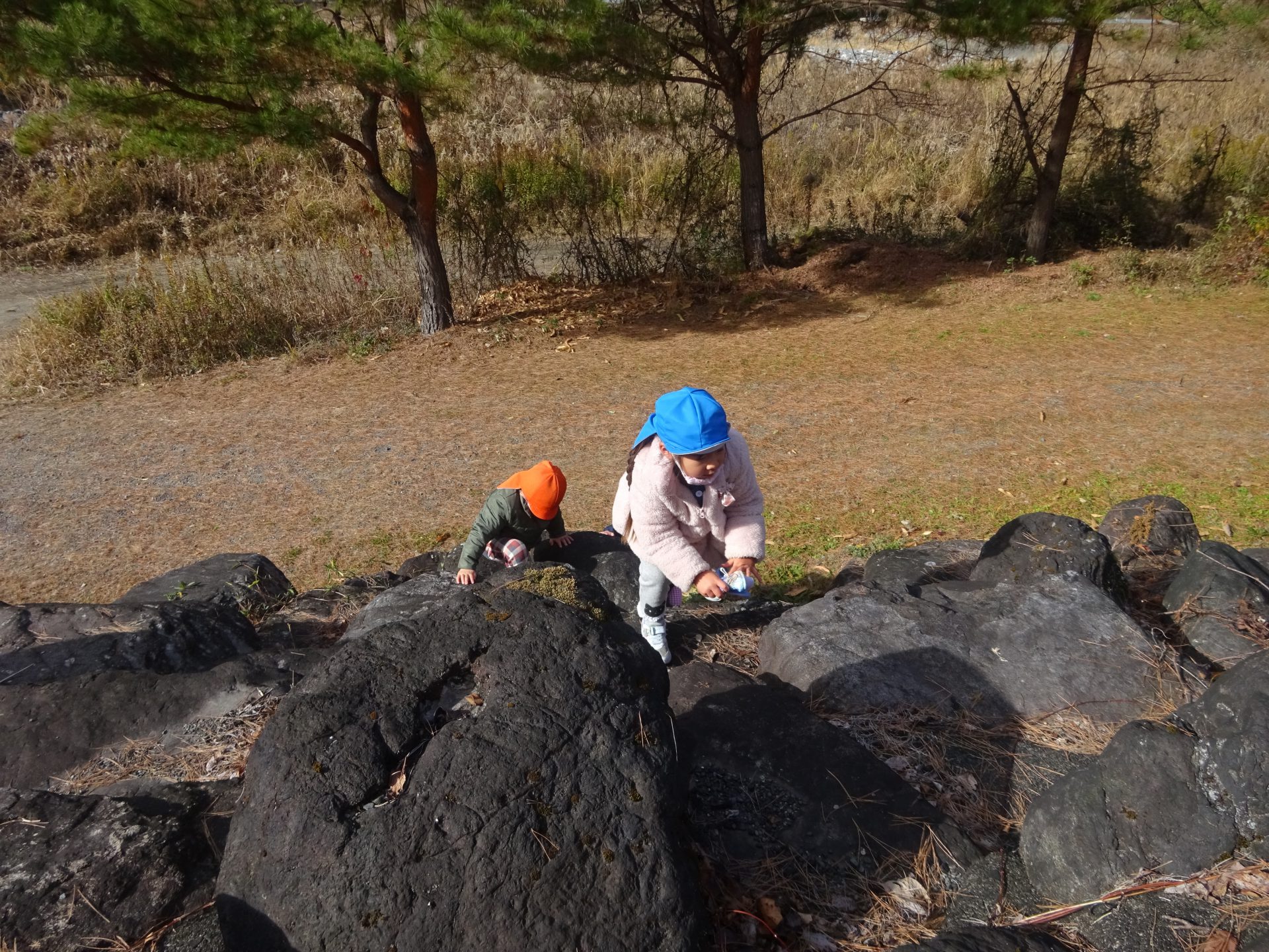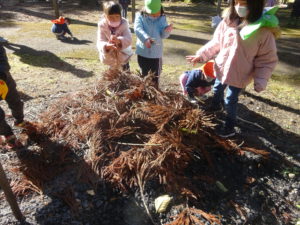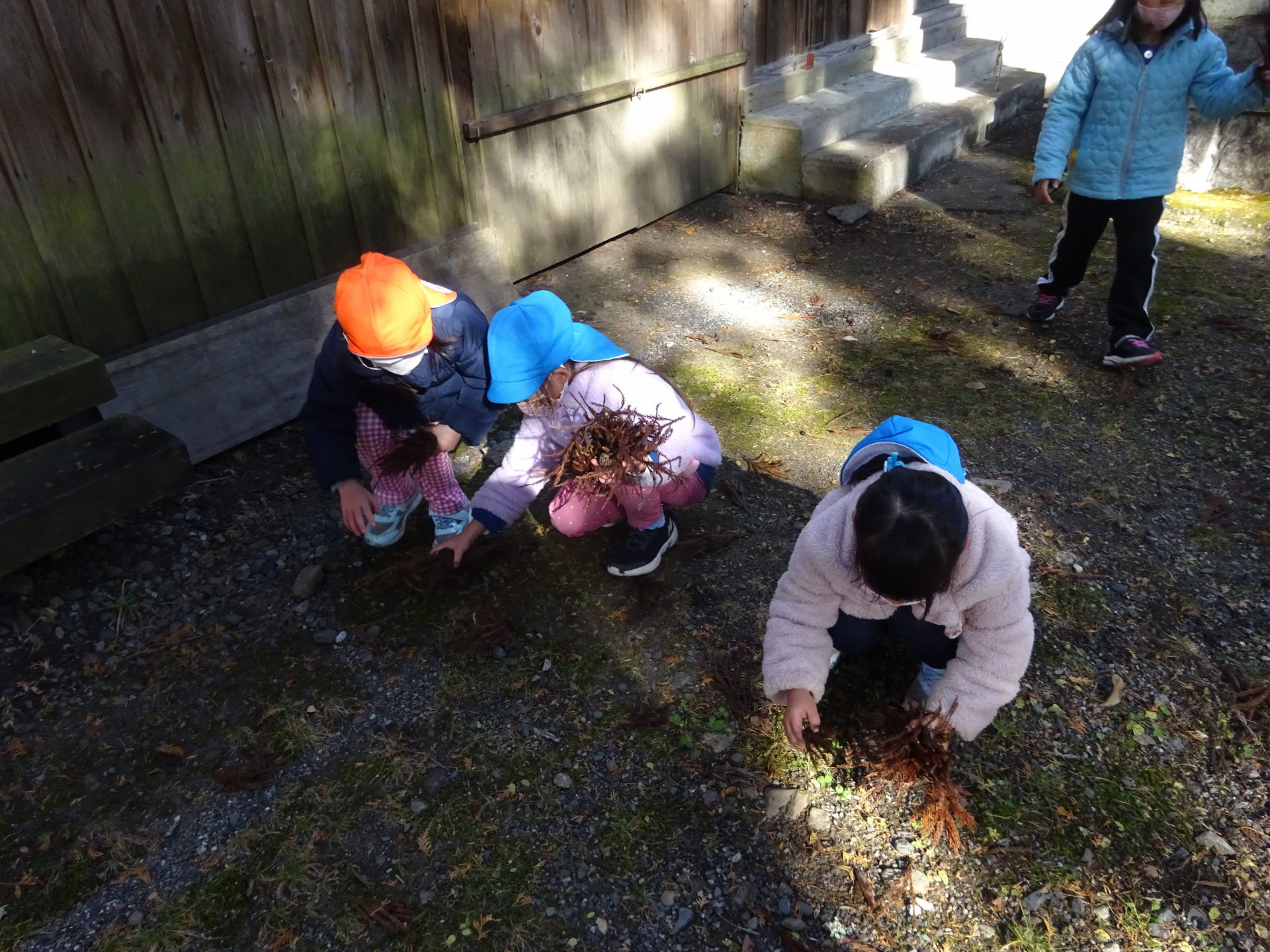たくさん枯れ葉が落ちていたので、「拾ってみる?」とお掃除が始まりました。