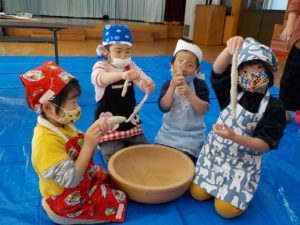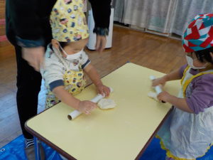 未満さんには小麦粉を用意しました。一緒にできるね。
