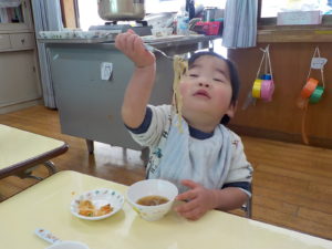 年長さんはなんと4杯も食べて、少しお疲れ気味?