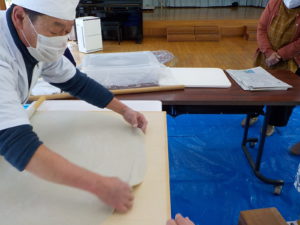 待ちに待ったそば打ちの日。そば作りから教えてくれたそば打ち名人の岡井さん、よろしくお願いします。