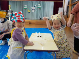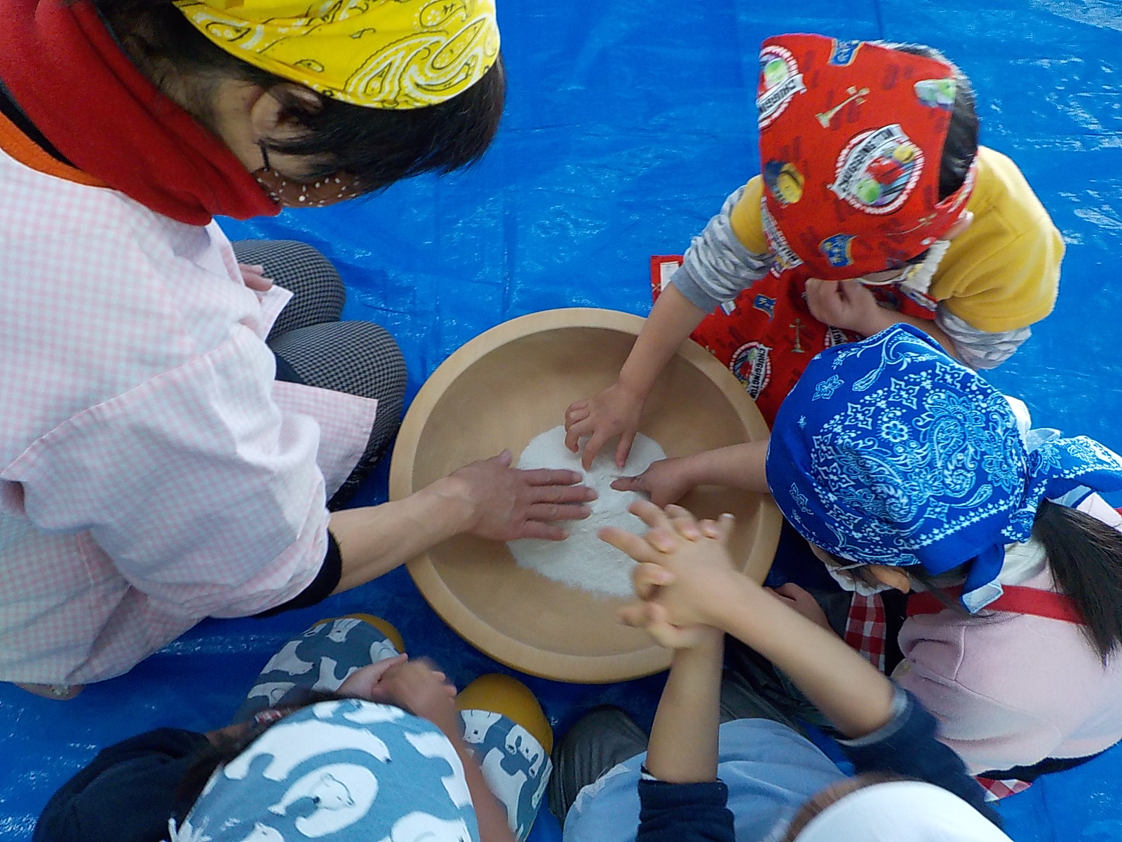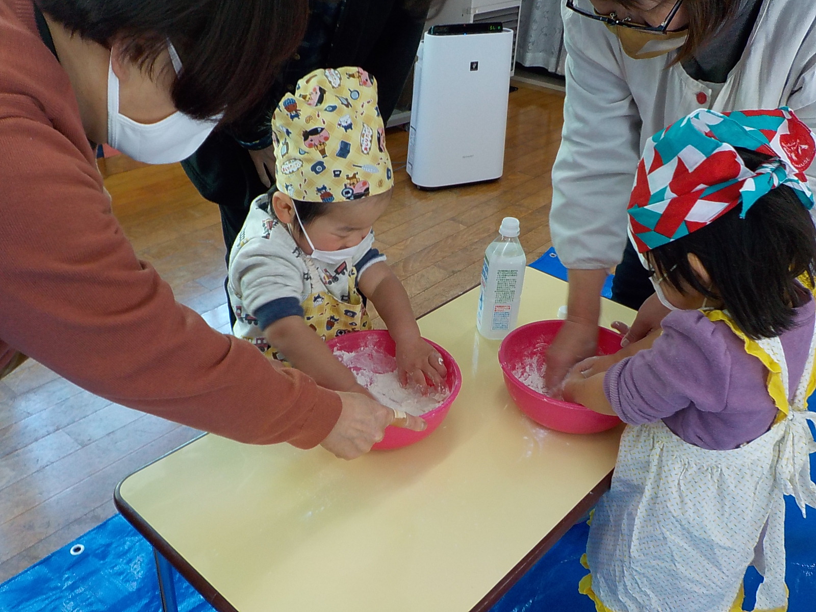 未満さんには小麦粉を用意しました。一緒にできるね。