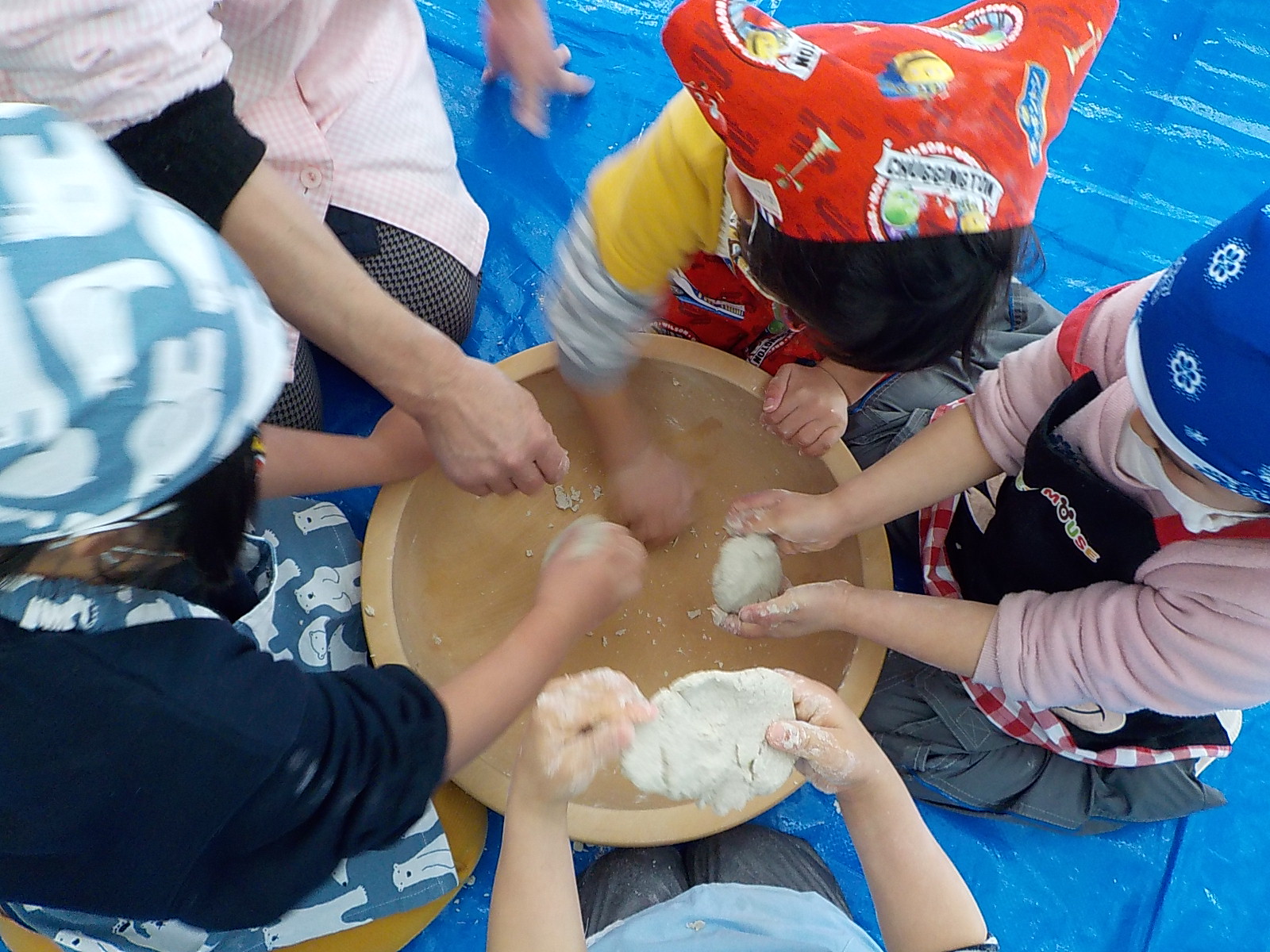 そば粉に触らせてもらい「さらさらする。」手触りの気持ちよさをしっかり味わっていました。