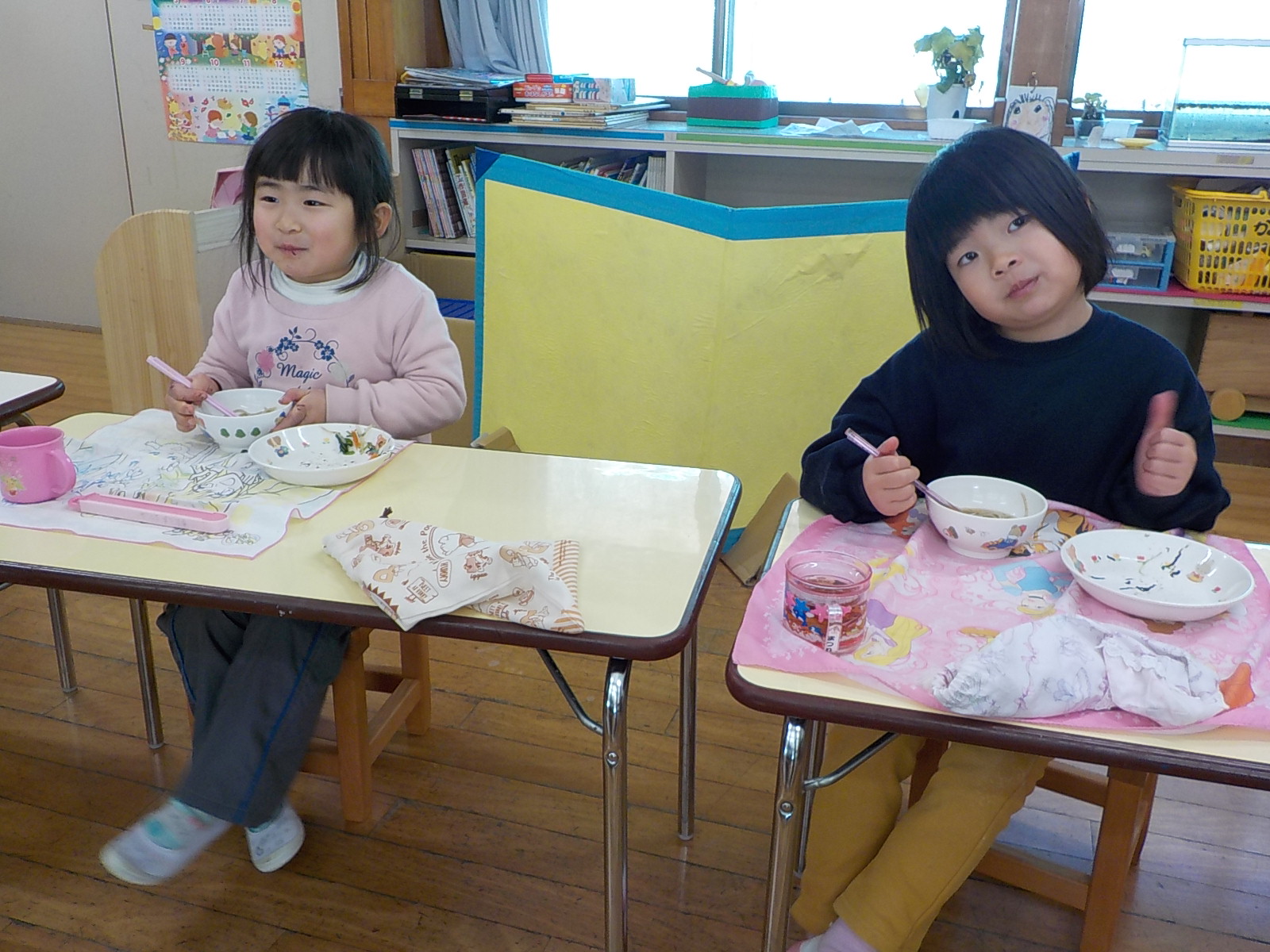 年長さんはなんと4杯も食べて、少しお疲れ気味?