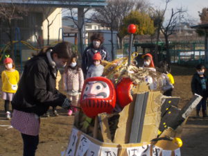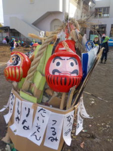 どんど焼きに向けて、だるまの目入れの経験をしました。