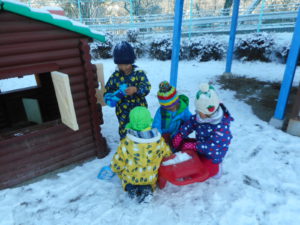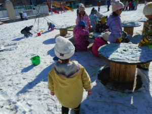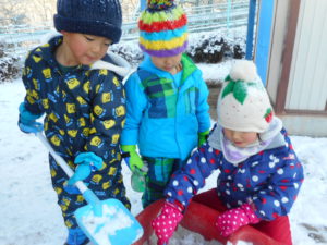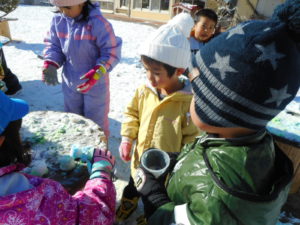 戸外遊びも、雪も氷も大好きな子どもたち。