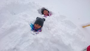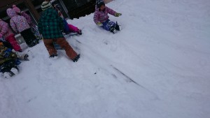 今年はなかなか雪が降り積もらず、雪遊びもなかなか思い切りできず…。