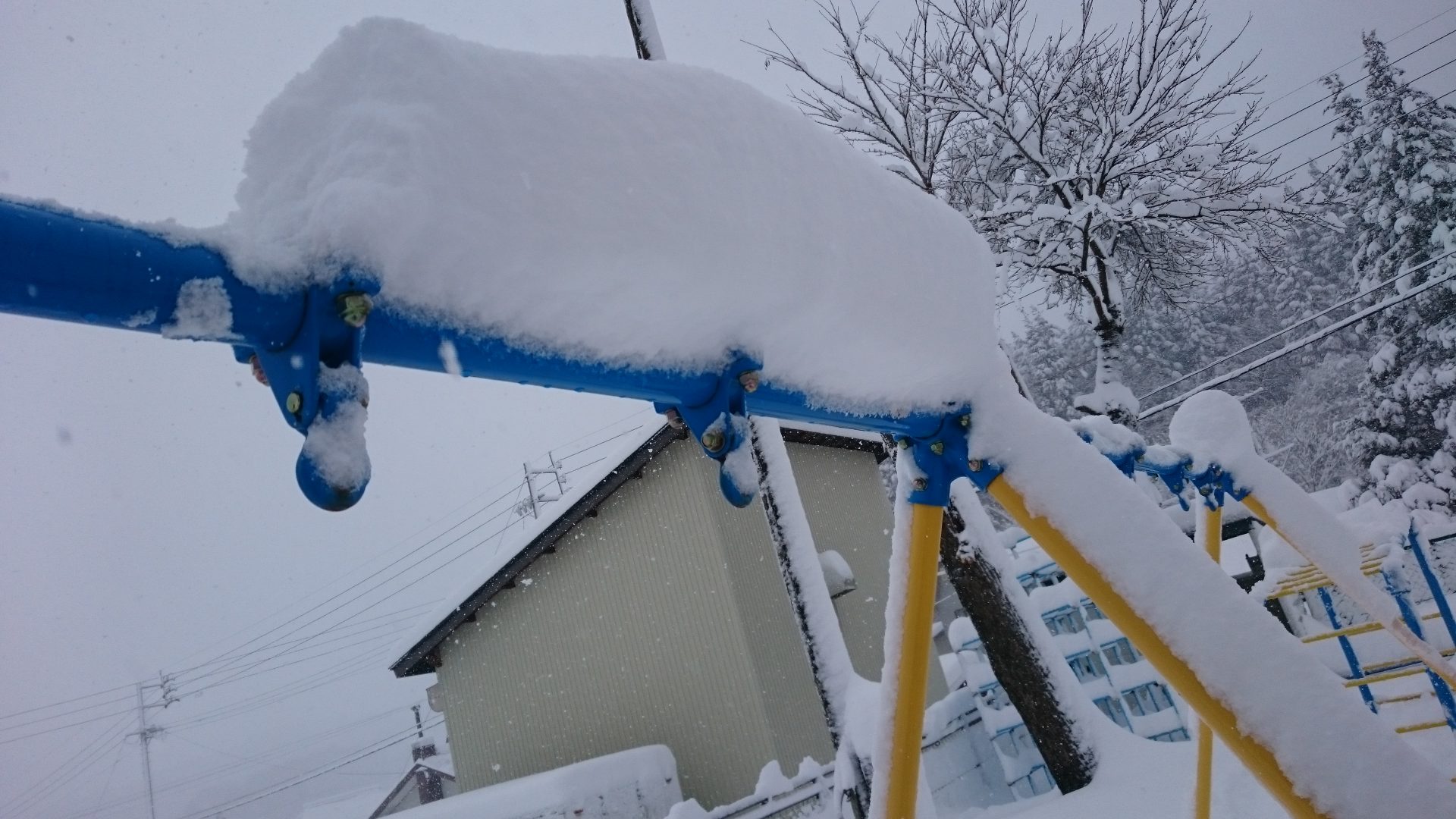 「ブランコの上にいっぱい雪があるよ!」