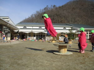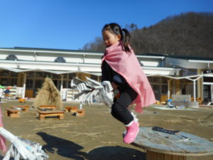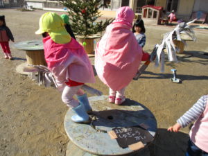 年中児の姿をみて真似をしたくなり、すかさずあそびをキャッチする2歳児の子どもたちのアンテナもすごいなと思います。異年齢との関わりやあそびも楽しい発見の毎日です。
