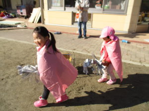 登園してからずっと まじょになってあそんだ子どもたち。