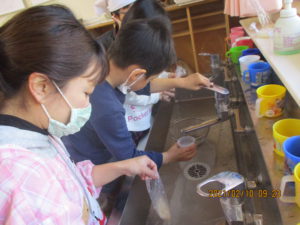 お米が美味しく炊けるように、みんなで「おいしくな~れ」とおまじない。
