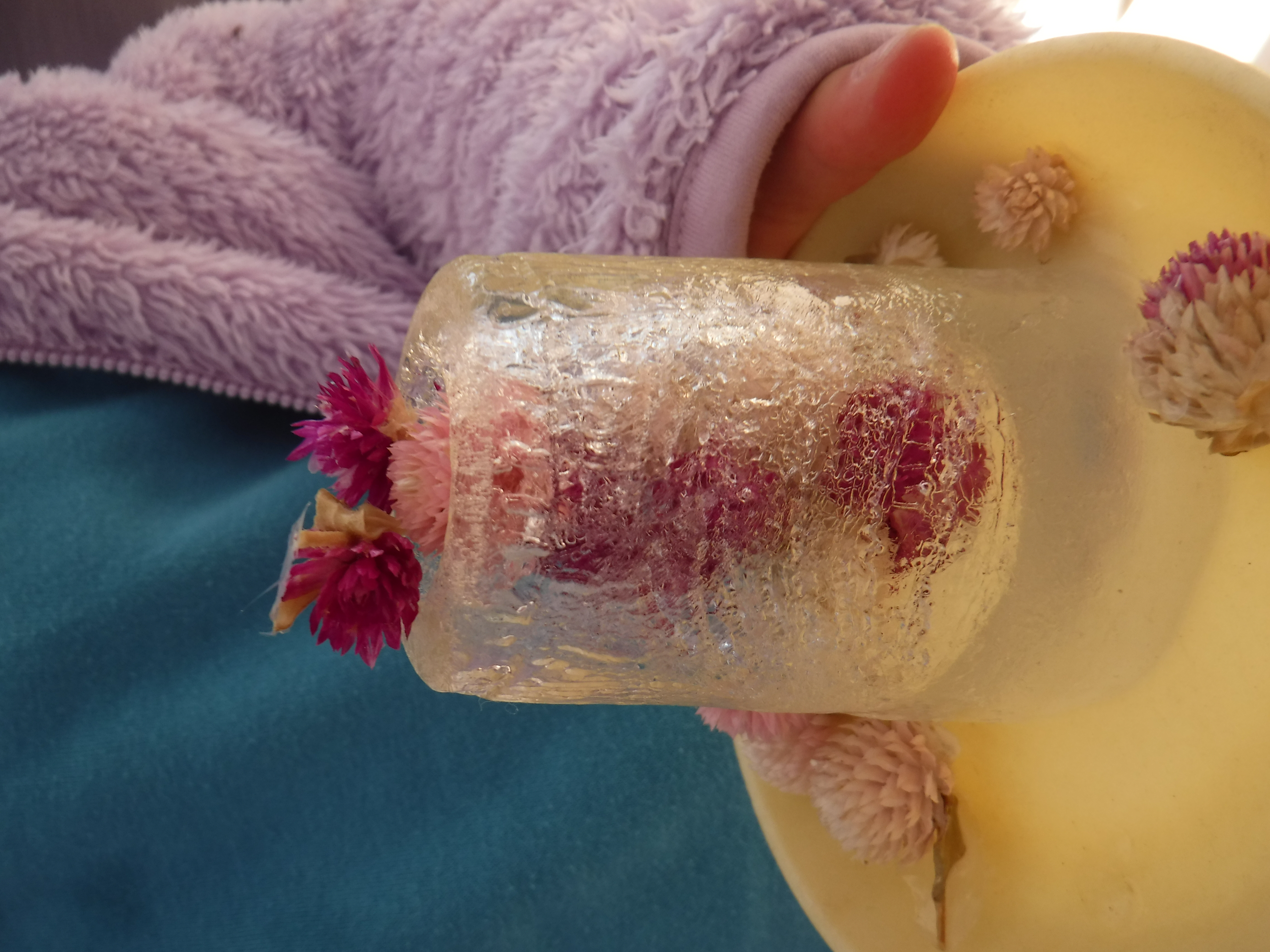 葉っぱやドライフラワーにした千日紅を入れたり…実験開始!