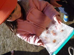 前の日よりも氷が厚くなっていることに気付いた子も。