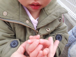 「おてて、つめたーい!」