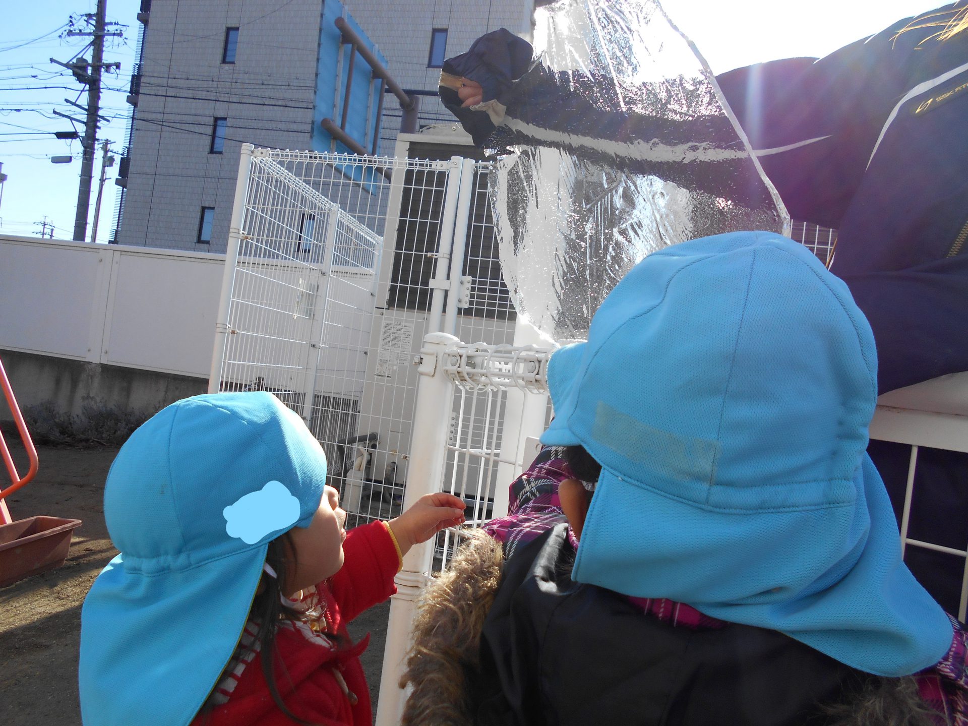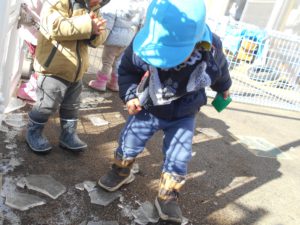 「こおり!こおり!」と興奮気味の子どもたち。