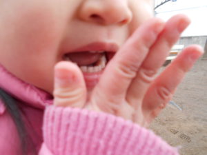 自分の息で手をあたためようとする子がいました。