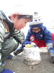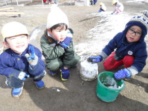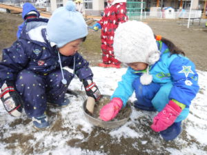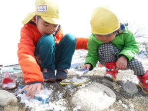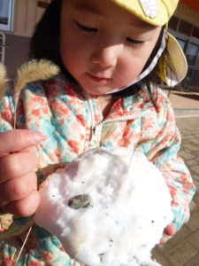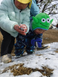 ・実際に雪に触れる中で、冷たさや、固まる感触、溶けていく様子など肌で感じていたこども達・・・