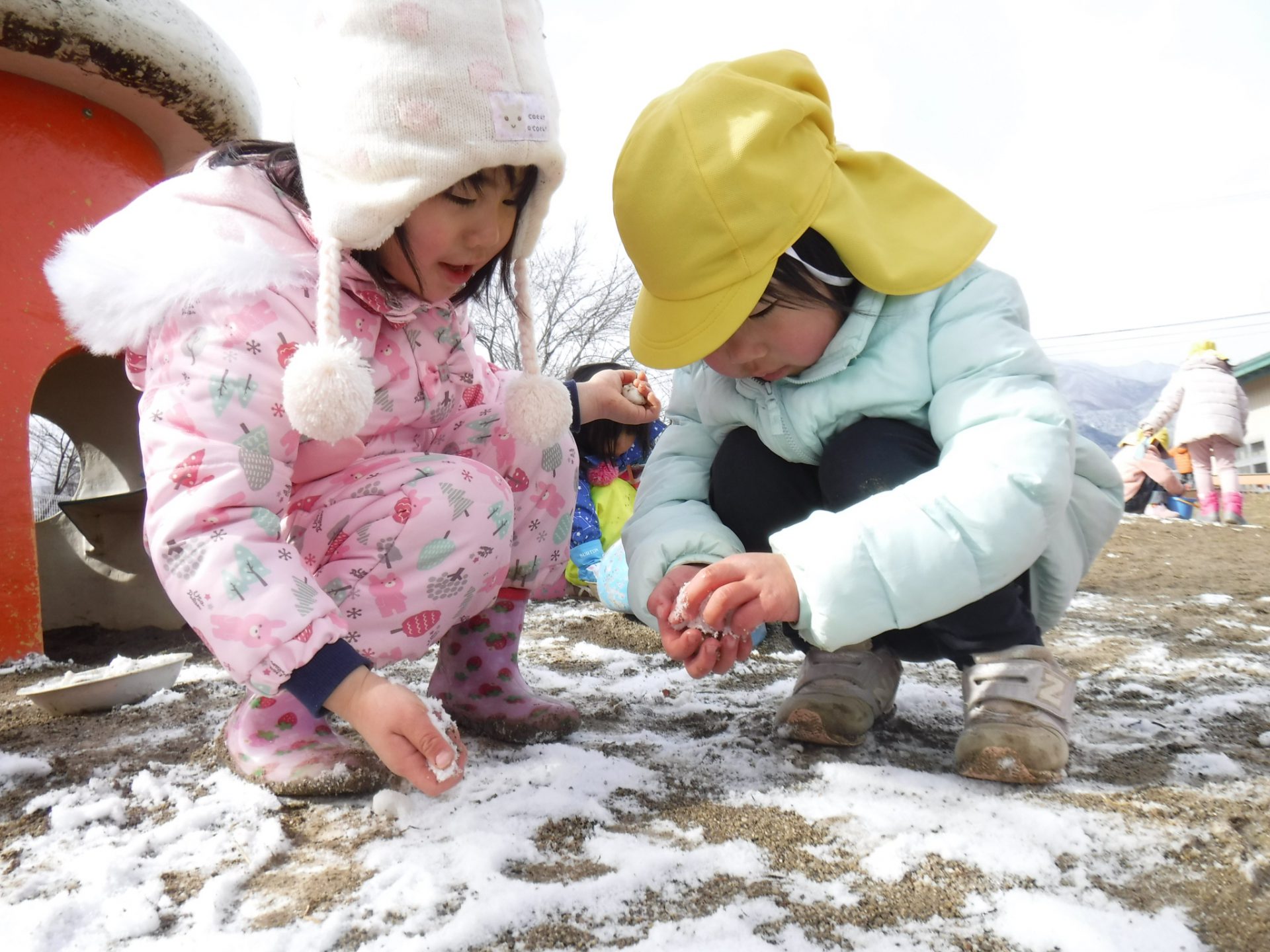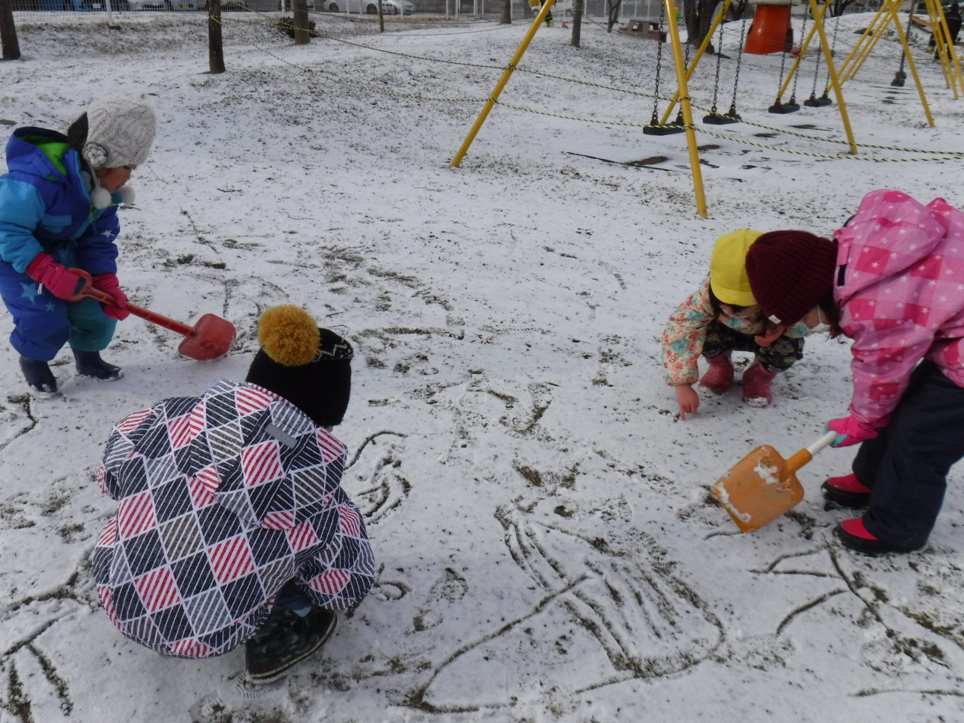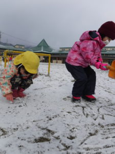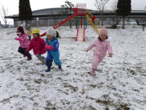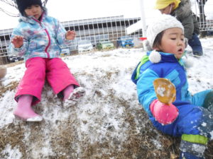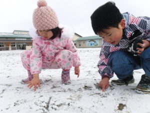 ・うっすらしか積もらなかったけれど、子ども達にとって雪は魅力的。