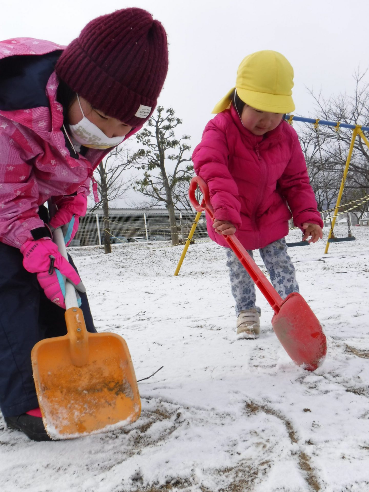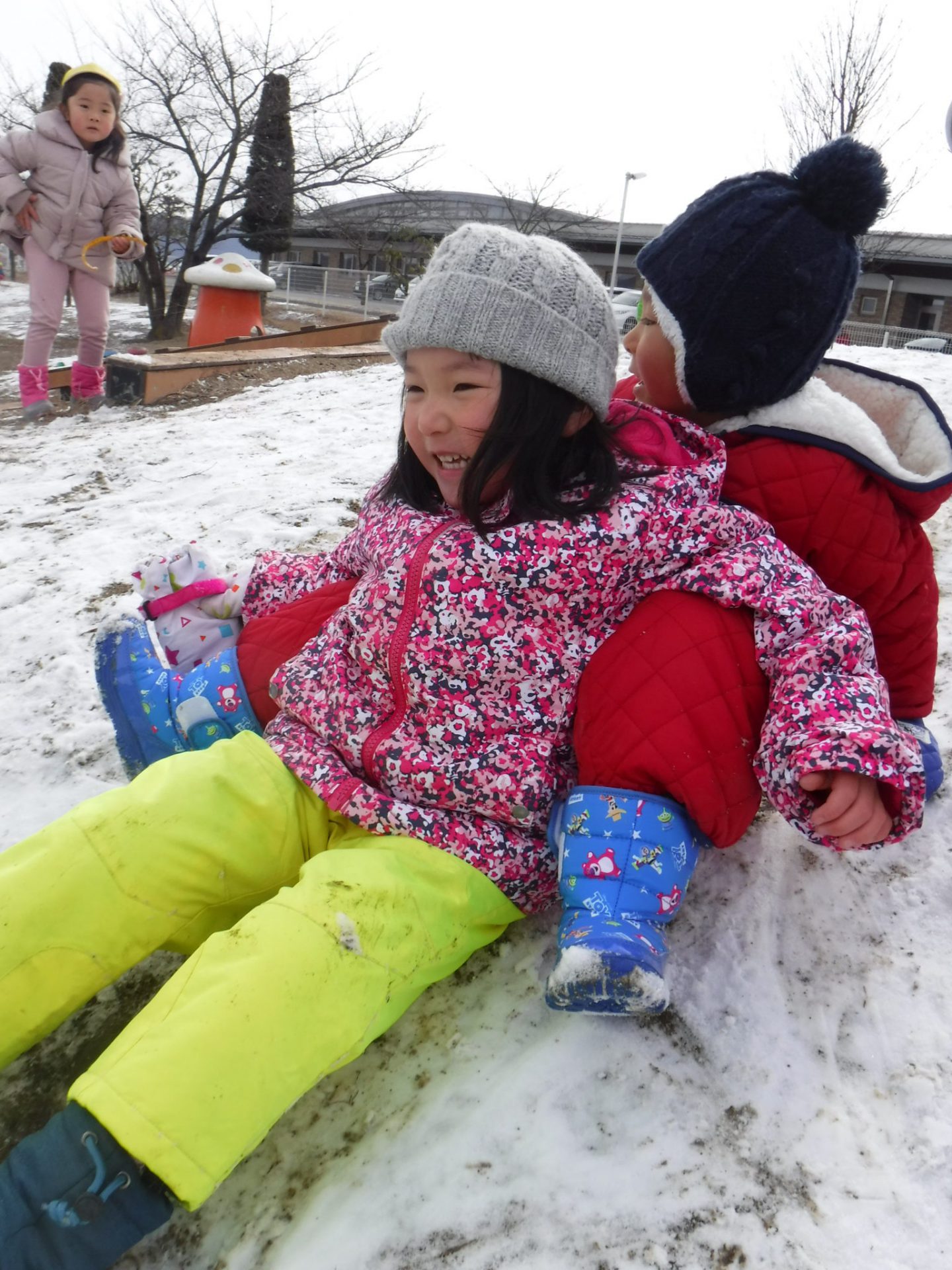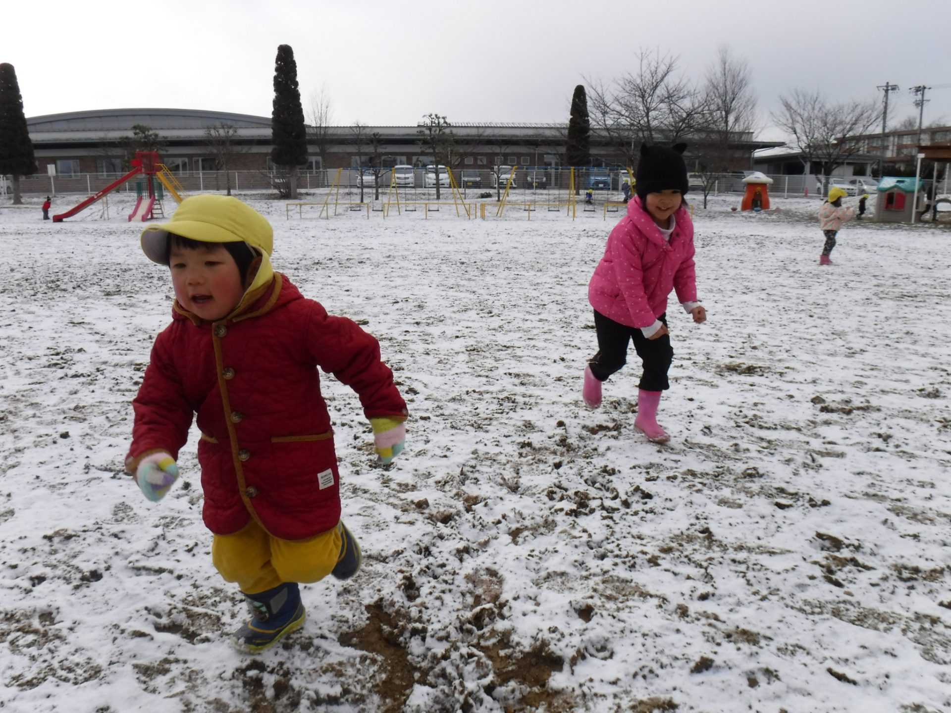 ・うっすらしか積もらなかったけれど、子ども達にとって雪は魅力的。