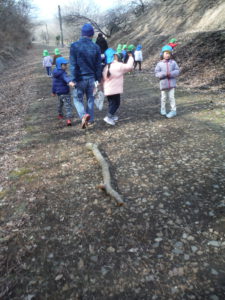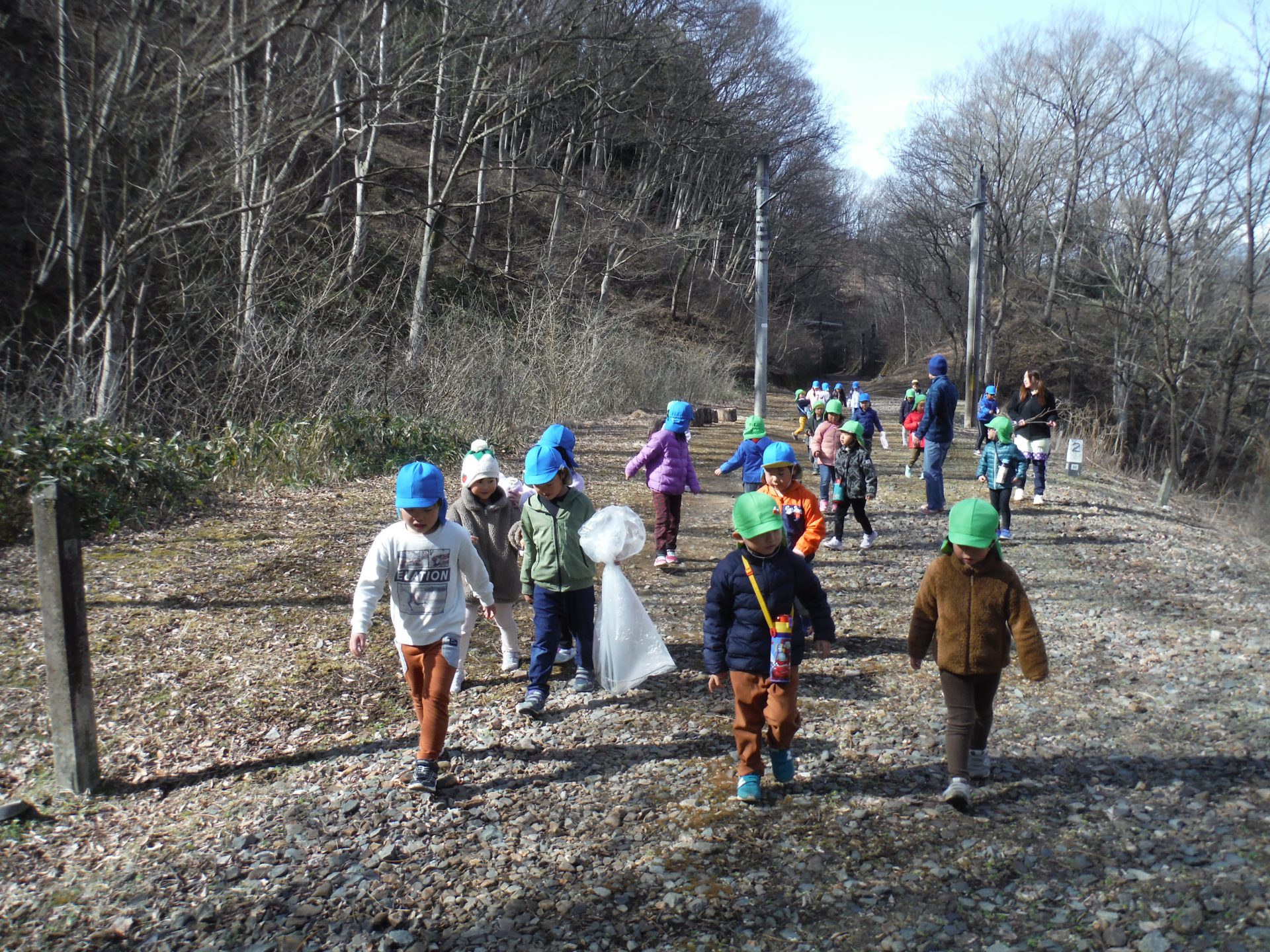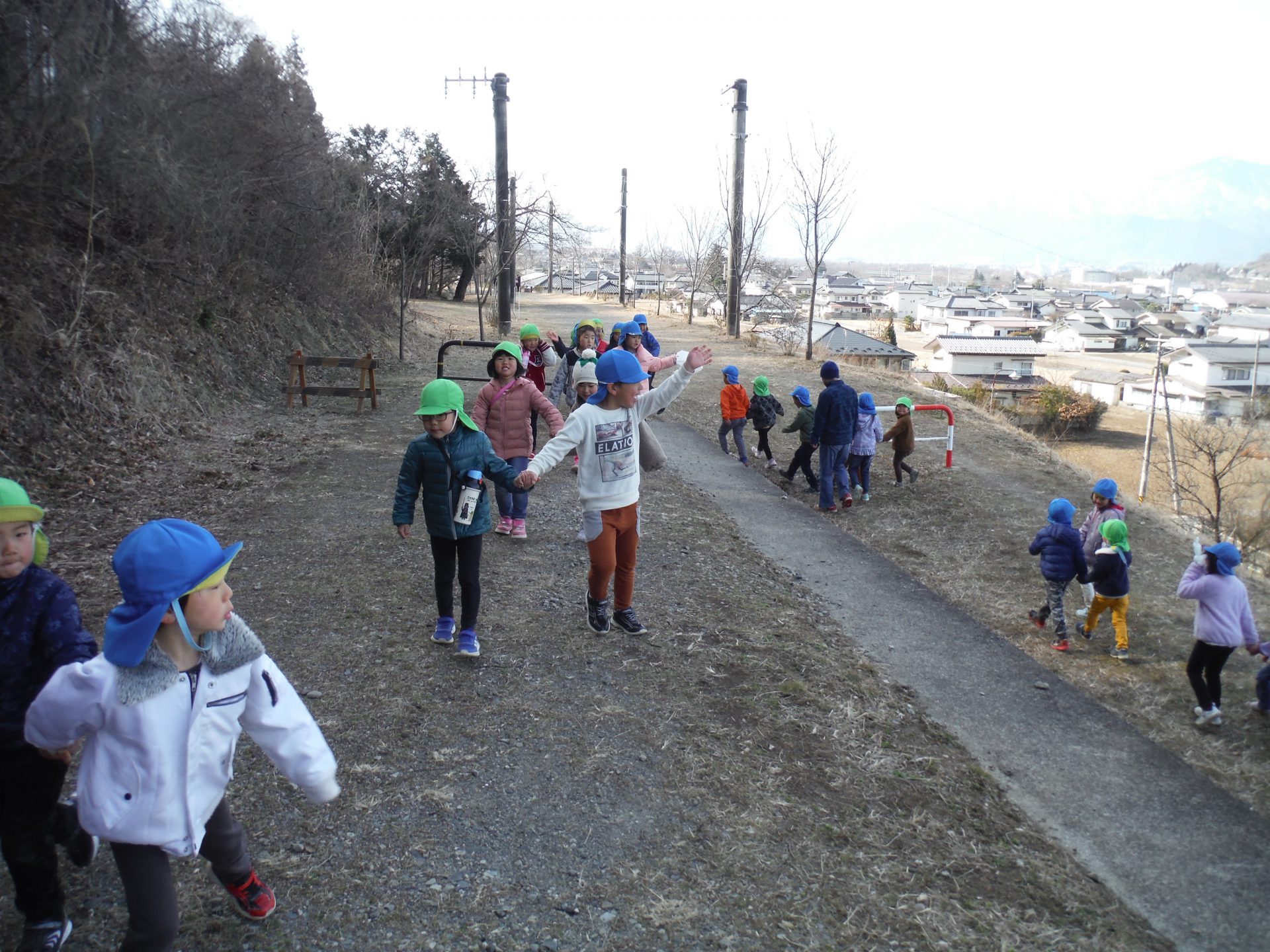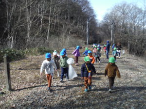 年中と年長 一緒の散歩です。
