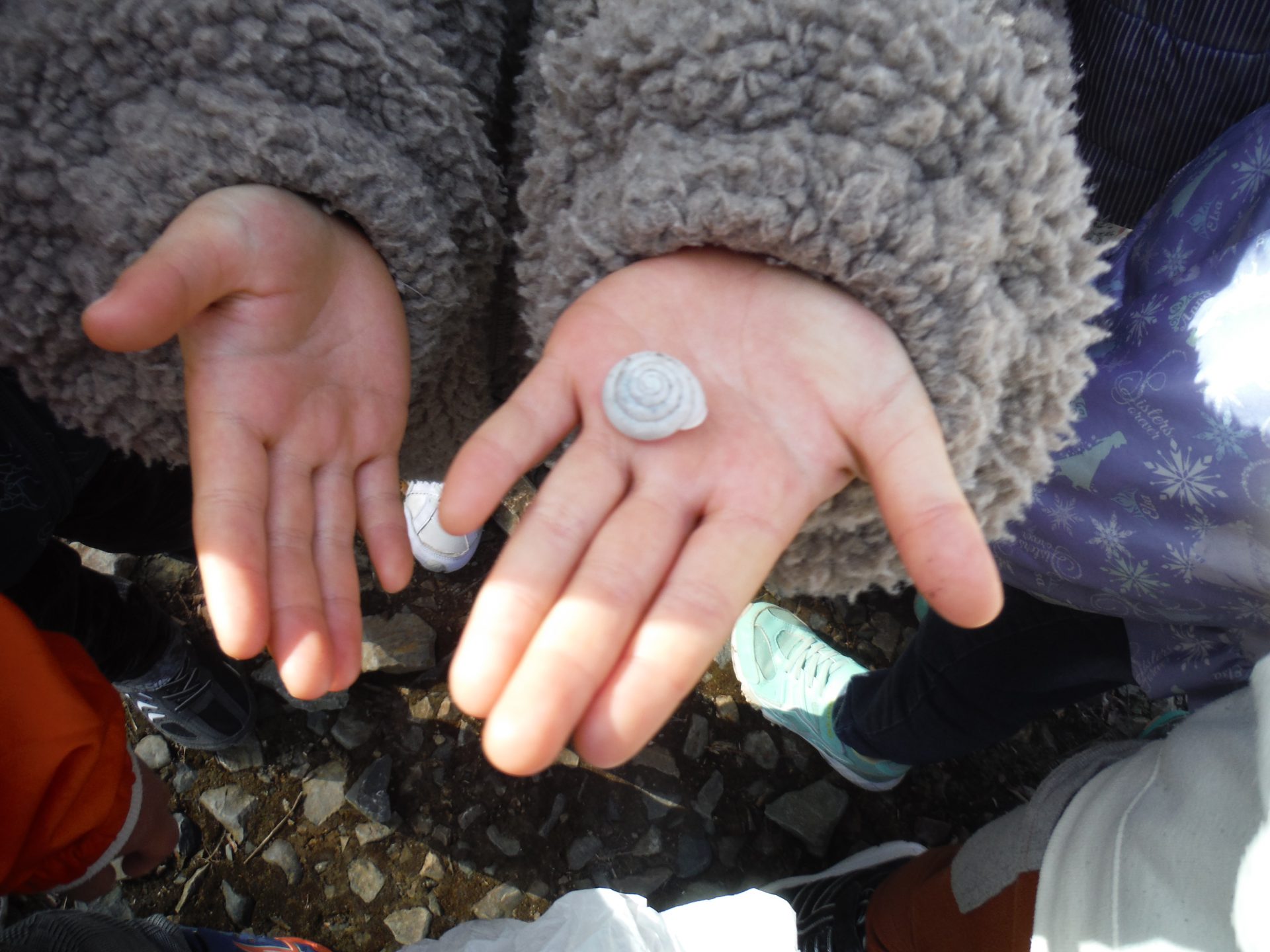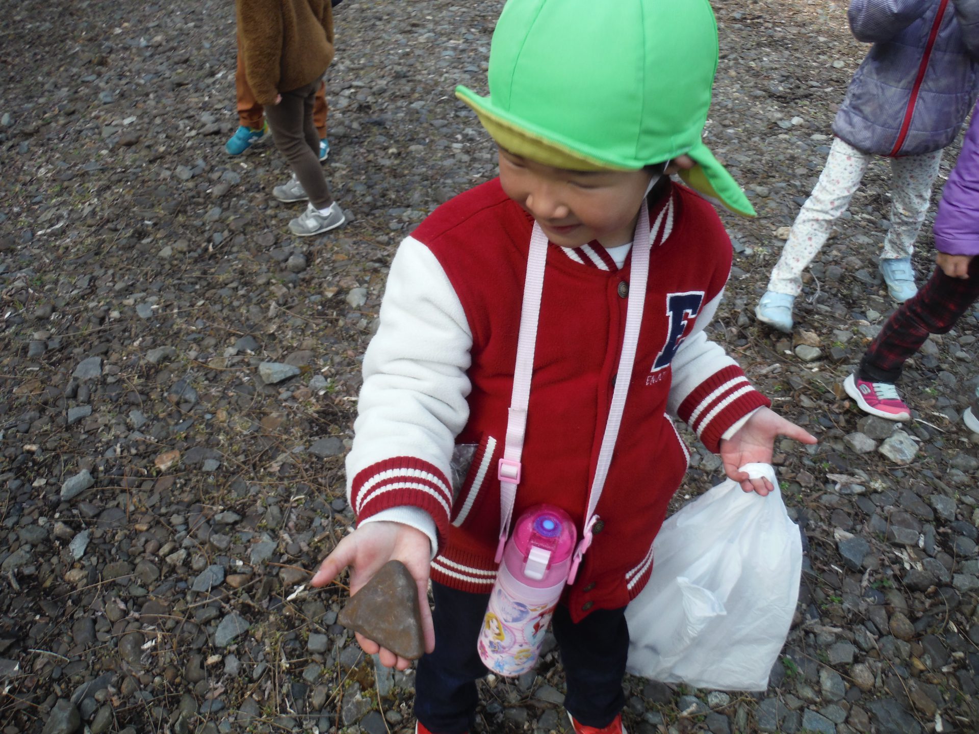 「みてみて、ハートの石 発見」