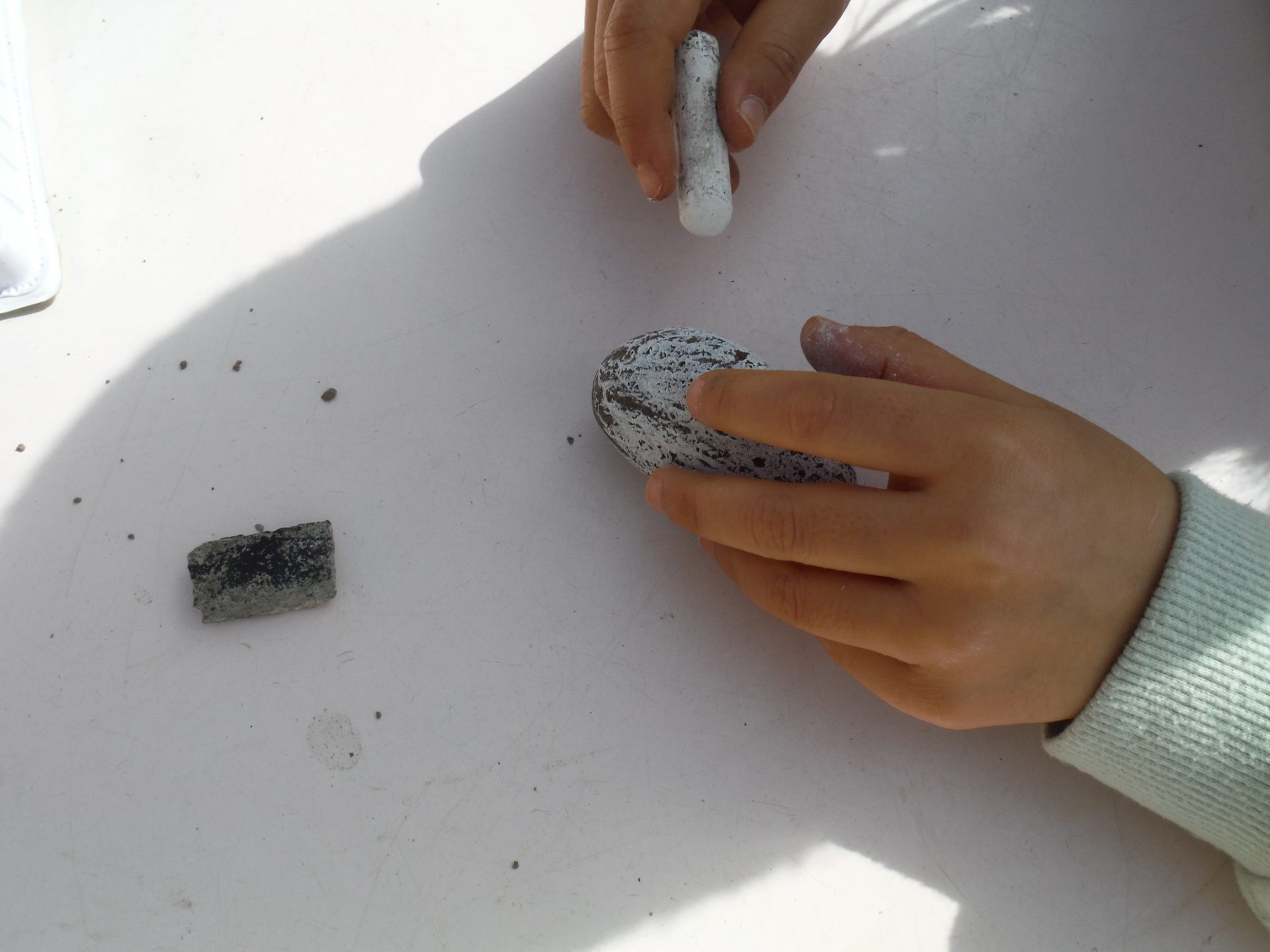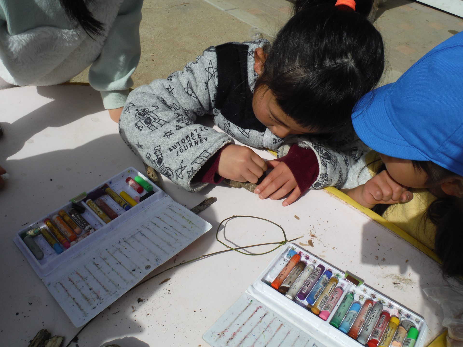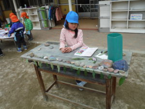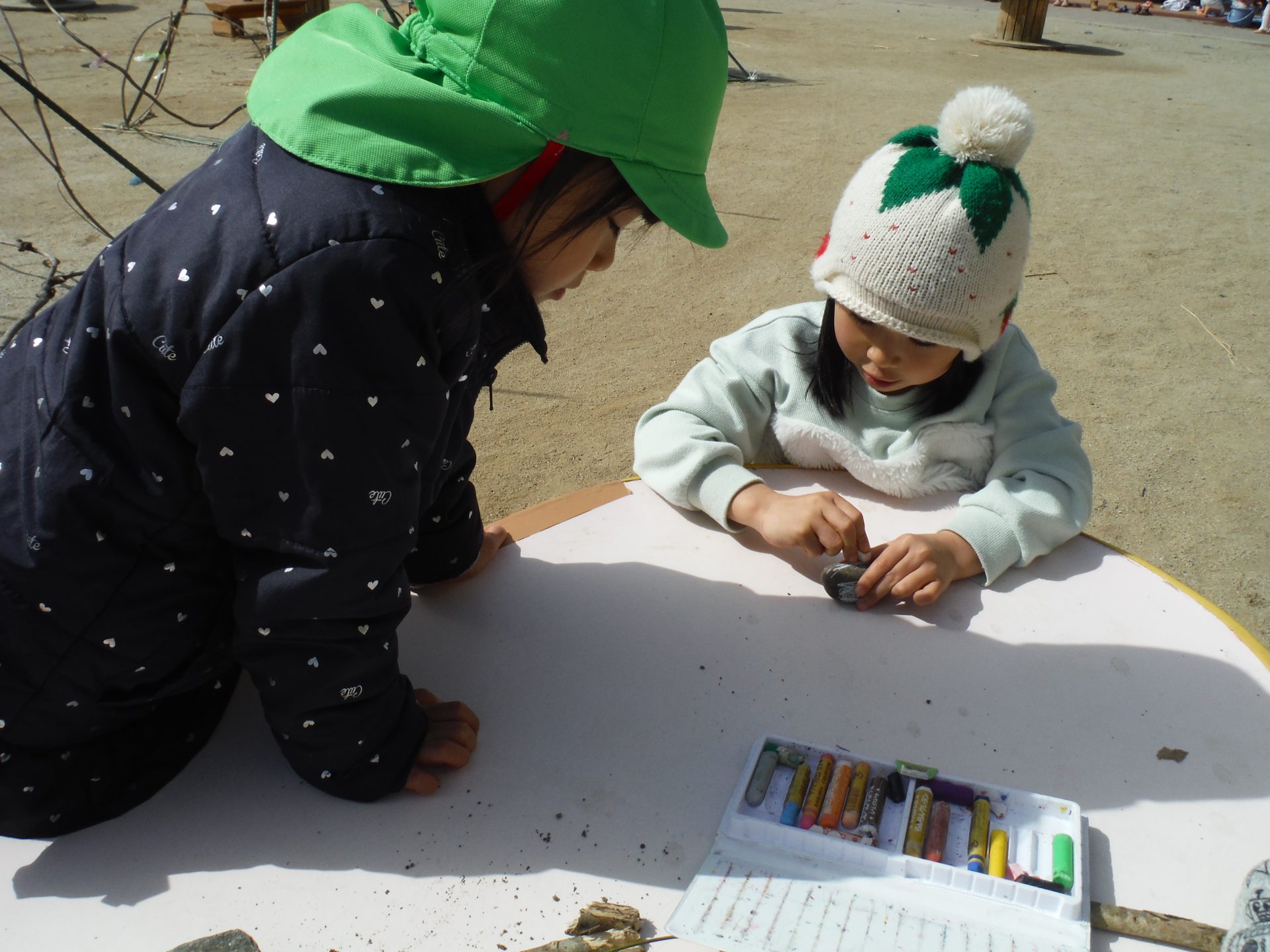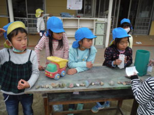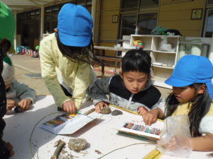 園につくとさっそくひろってきた石をぬります。