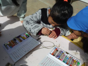 集中して色ぬりをしています。