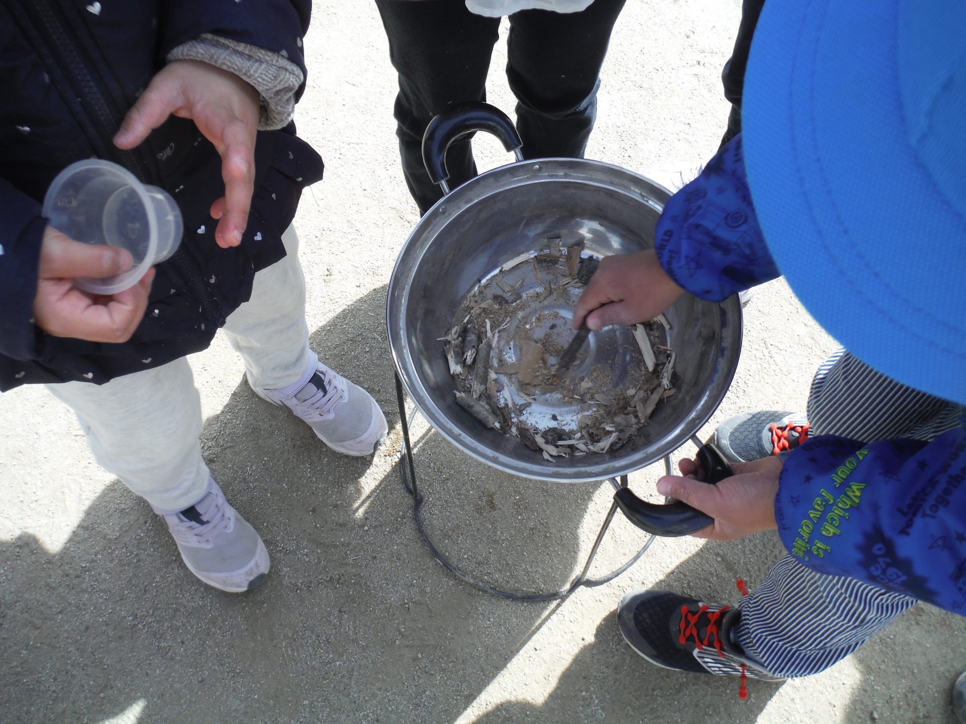 ていねいにだしをてのひらに集めます。
