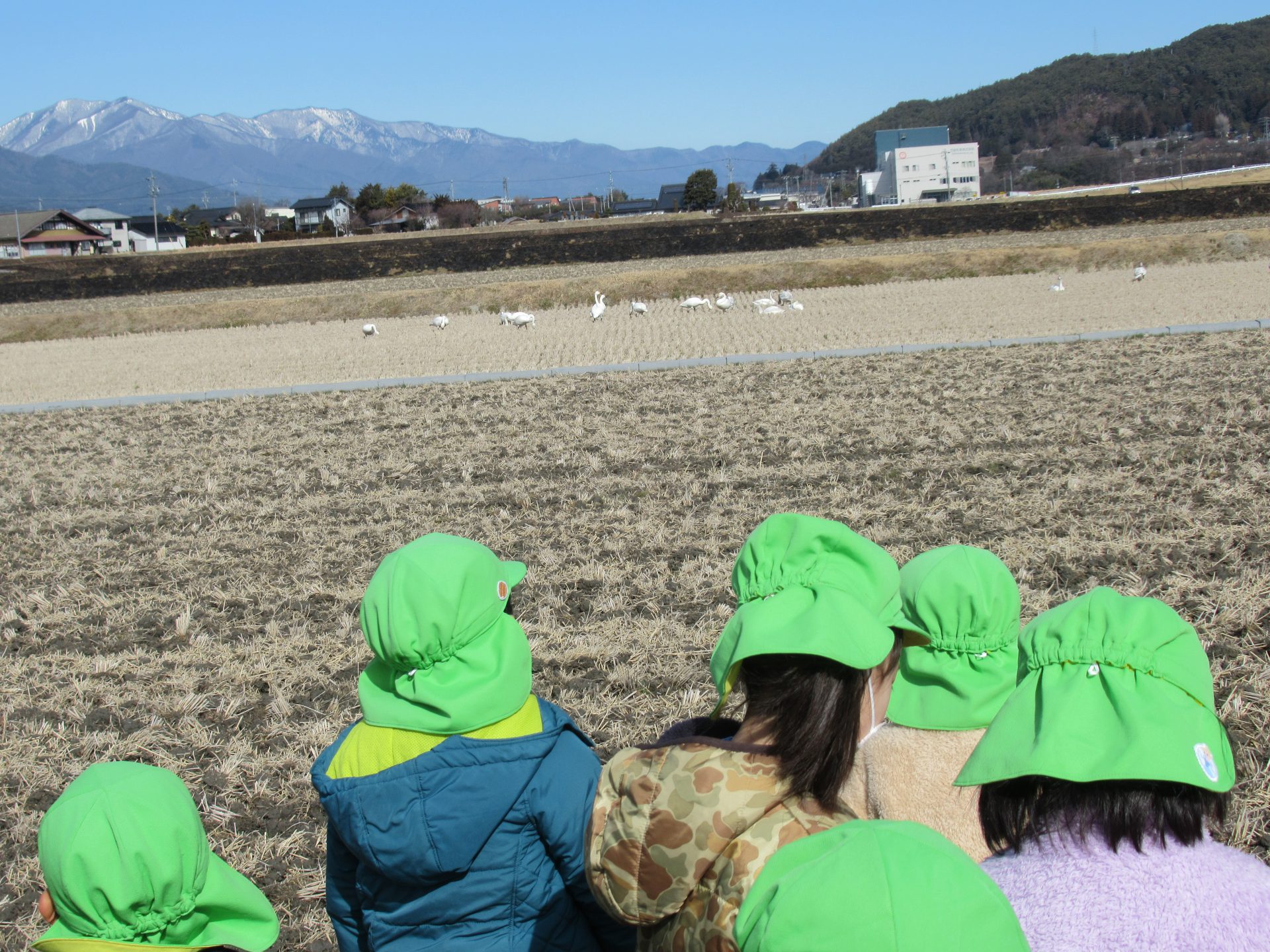 年長 子どもたち同士の会話にも、コハクチョウが出てきていたので、実際にみんなで