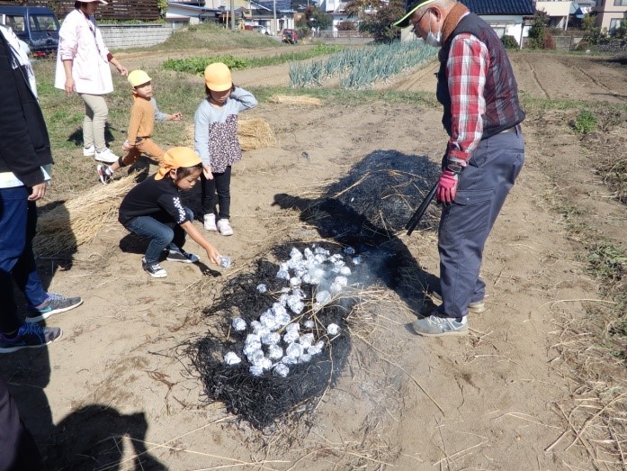 ・焼き芋の出来る場所を考えたり、炊き付けを近所の神社に拾いに行ったり、