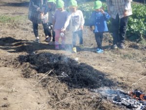 「芝生でやきいもができるのかな?」 「さつまいもを全部掘ったから、ここでなら