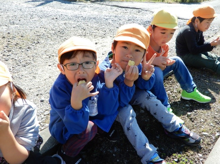 その場で少し味見しました。「あちちっ!あくておいしいね。」