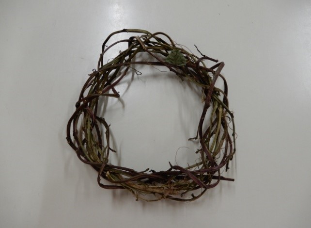 ・さつまいものツルも無駄にすることなく、クリスマスリースの土台に活用。