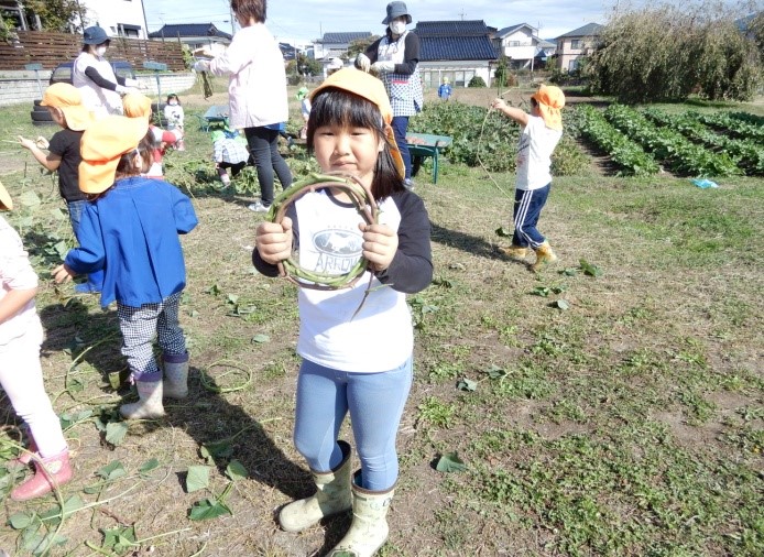 さつまいものツルでリース作りに挑戦 みんなじょうずに巻けました。