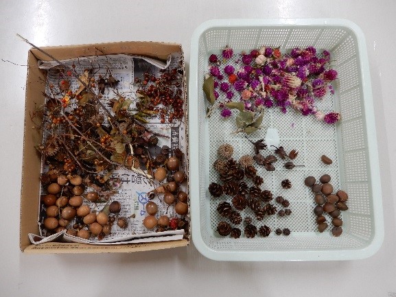 庭で咲いた花等、自然物も利用し飾り付けもでき、楽しむこともできました。