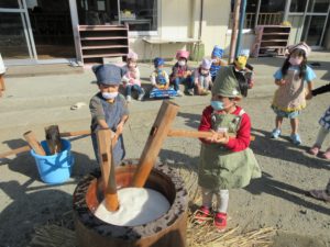 自分たちがかかわってできたもち米を使って餅つきを行い