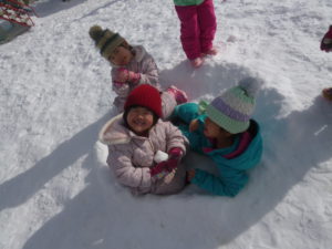 冬の、雪が降った時だからこそ出来る遊びから、友だちや保育者と言葉のやりとりや友達とのかかわりを楽しんでいました。