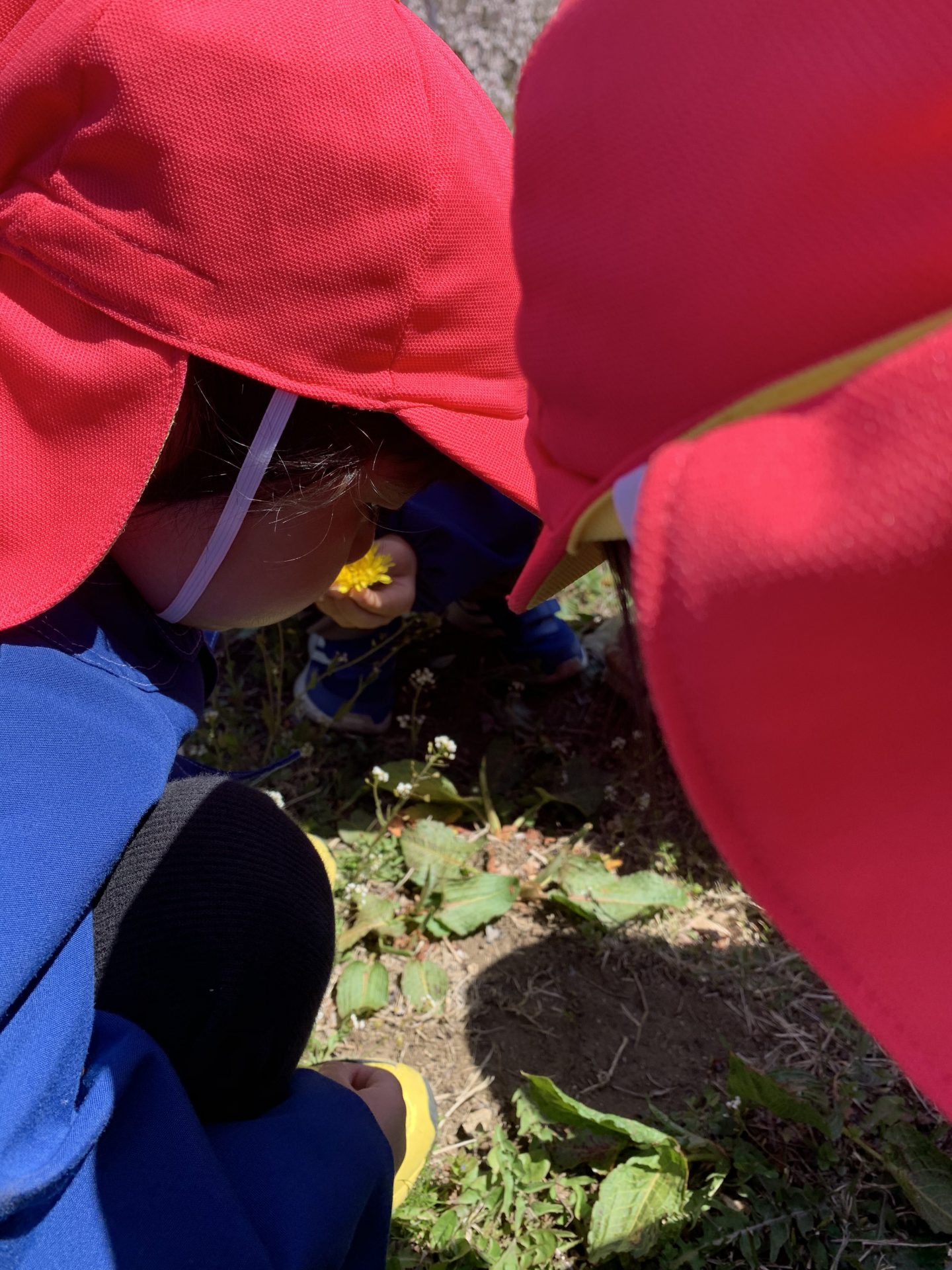 自然の中できれいなお花を見たり、虫を捕まえたりする