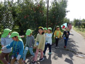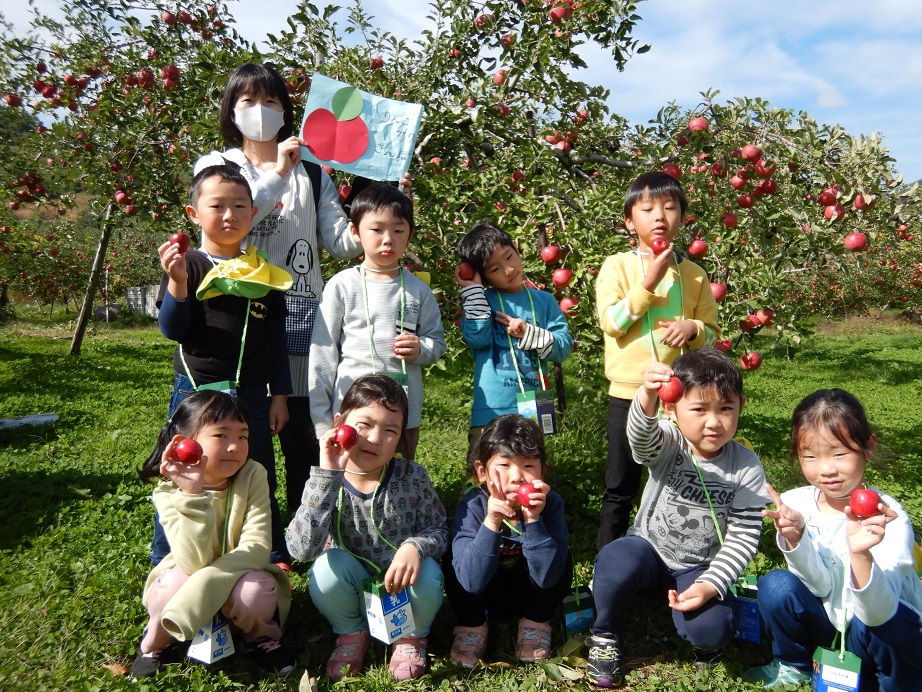 年長さんは秋のリンゴ狩りを思い出しながら卒園式を迎えました。