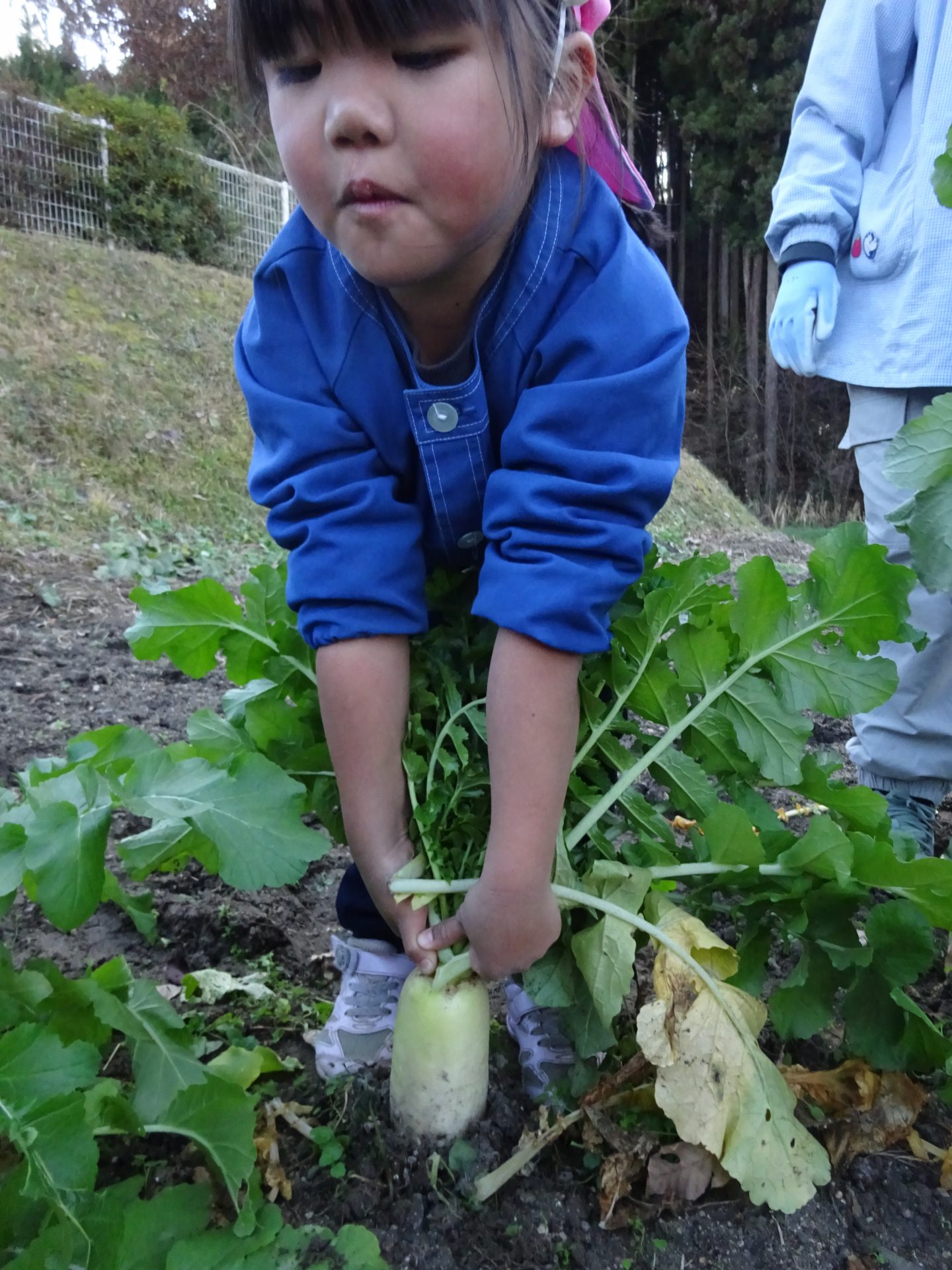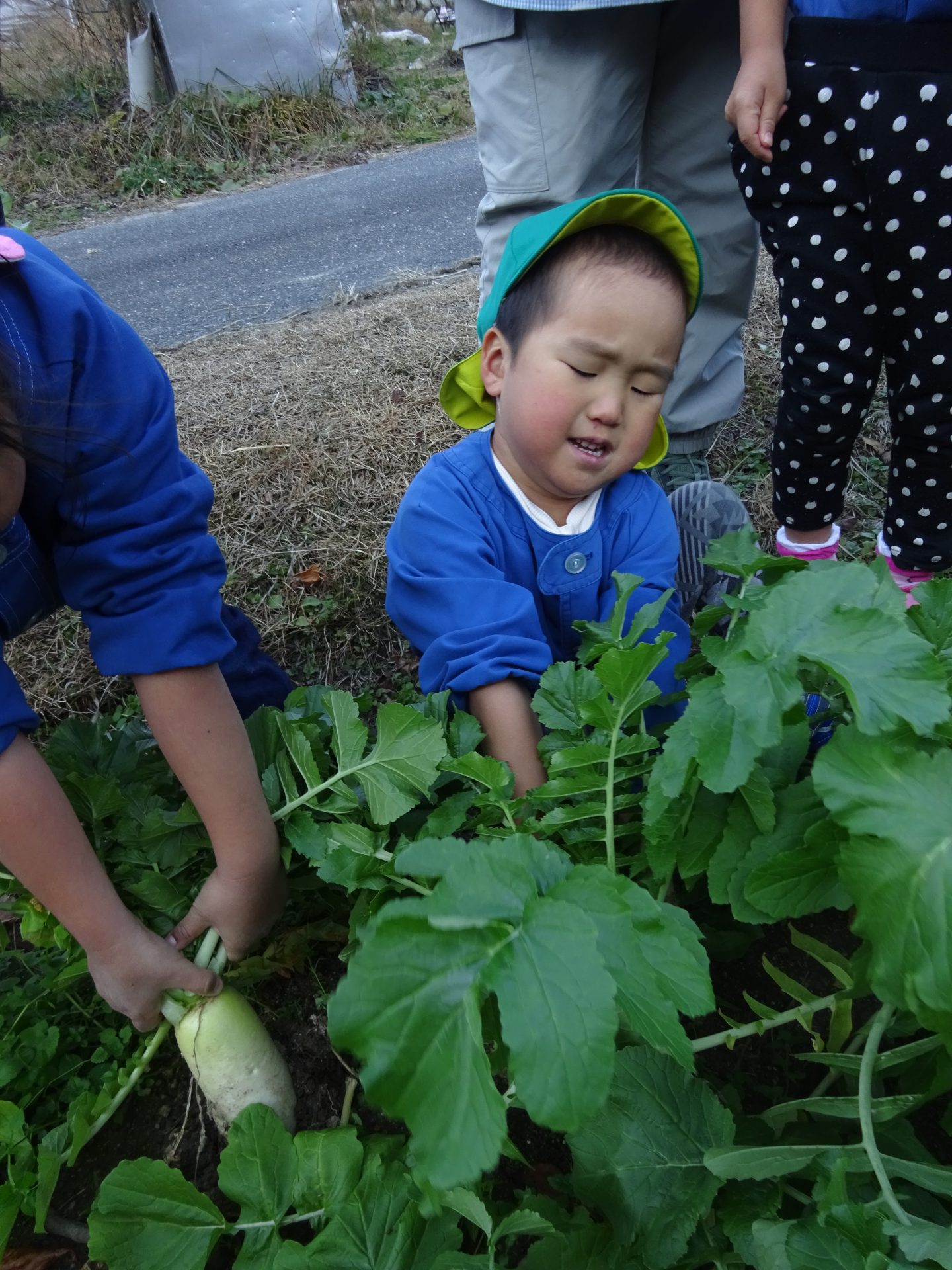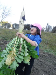 今日は大根の収穫日。土の中で大根大きくなっているかなぁ~? ワクワク・・・