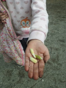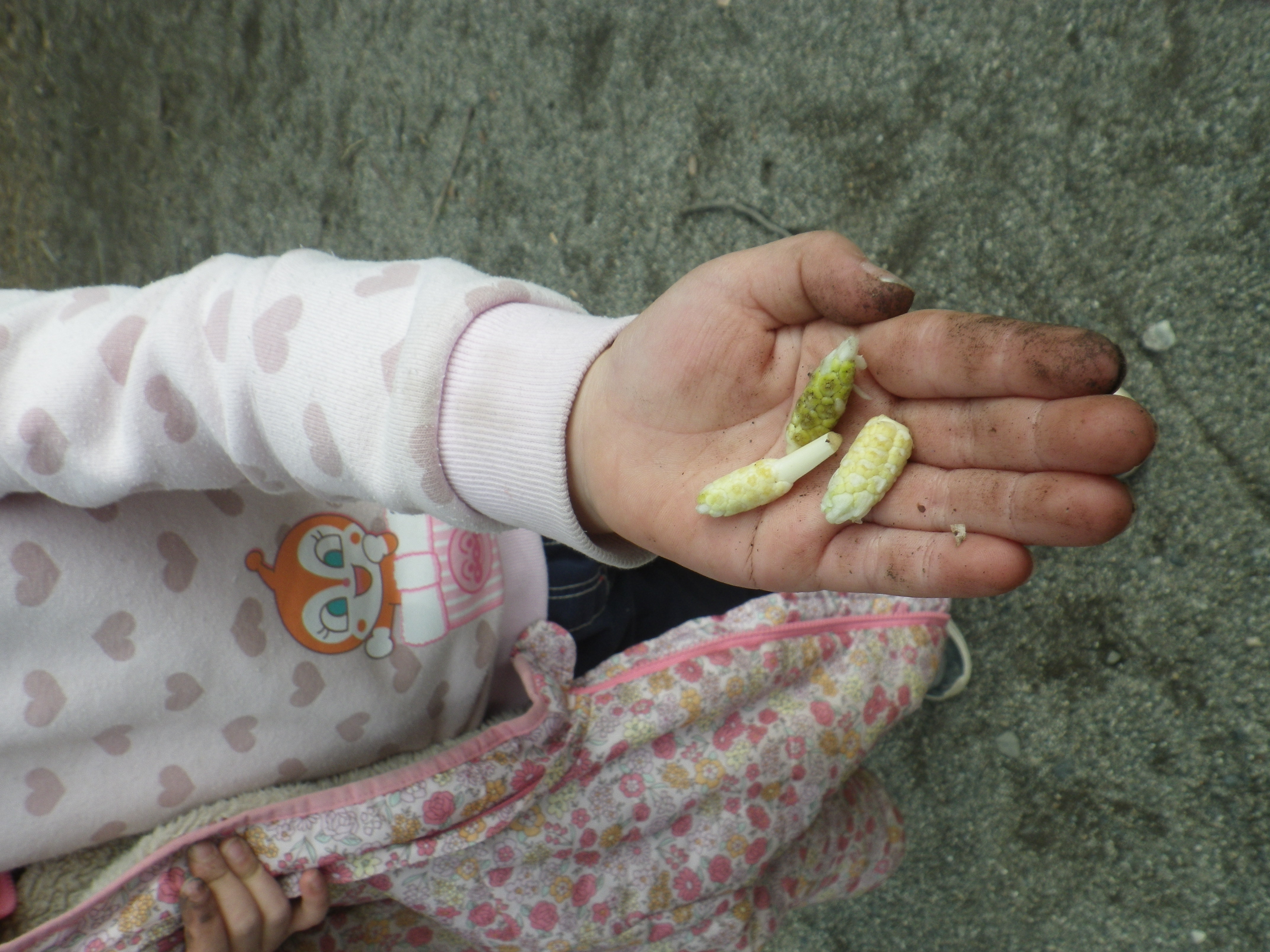 「やままゆがのエサは、豆を拾ってあげよう。」と豆まきの豆を