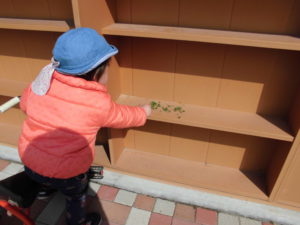 あそびが盛り上がってくると『おやさいがもっとほしい!』という思いから自分でクローバーを採りに行き、自らの思いを持ってあそぶ姿が印象的でした。