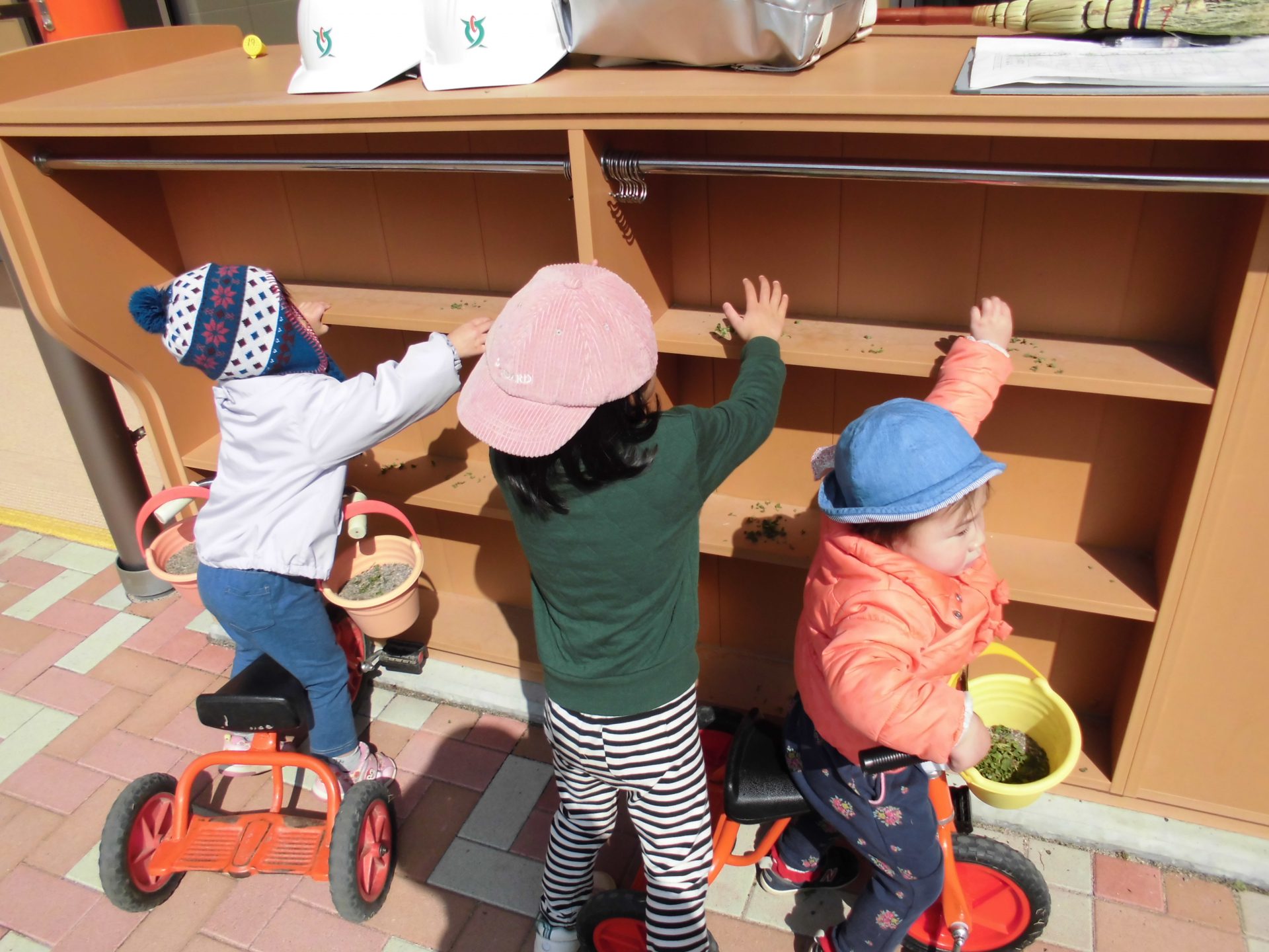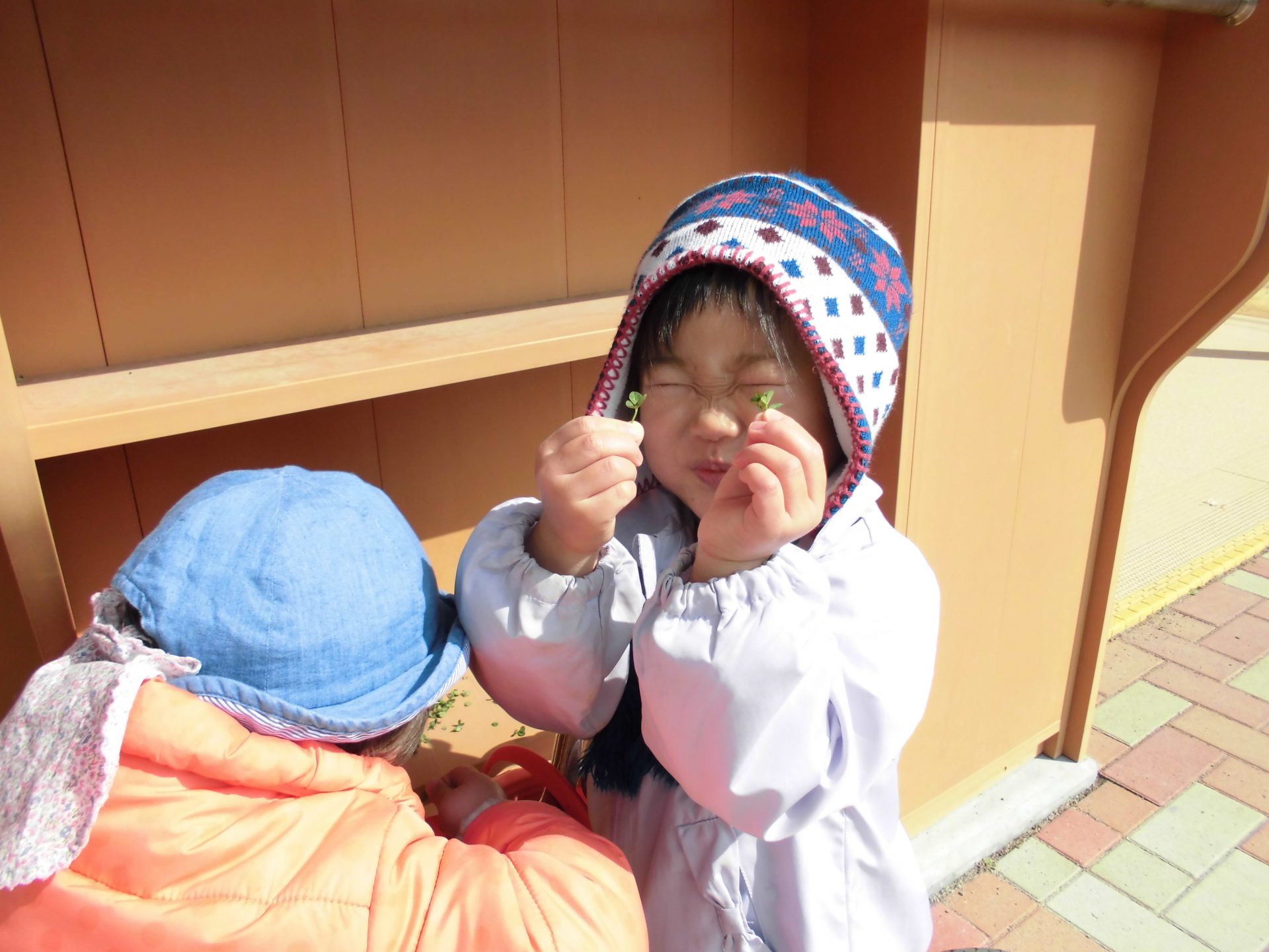 この日は、クローバーを野菜に見立ててあそぶのに夢中の子どもたちでした。
