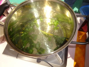 そこで笹をとってきたので、保育士が「笹茶」に挑戦しました。