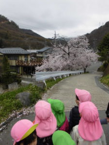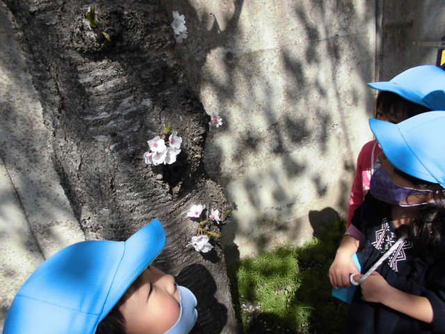 年中さんが、頑張って手をつないで桜の木の下まで連れて行ってくれました。