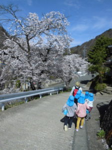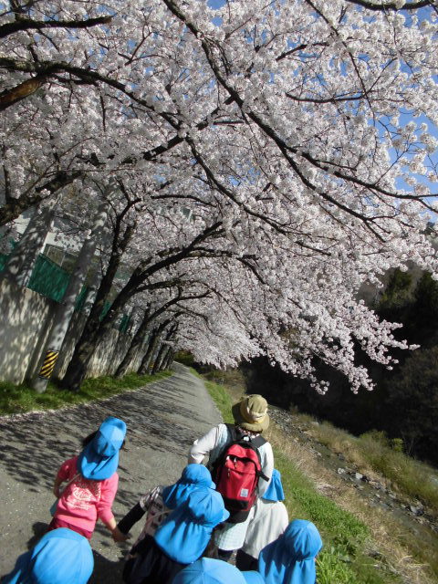 年長さんは、坂の桜トンネルをくぐって、もう少し遠出をしてみると