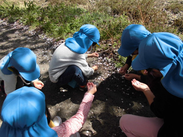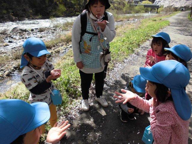 桜の花びら一つが、子ども達の発想力と思考力によって、たくさんの遊びが生まれます。