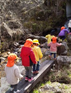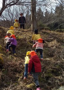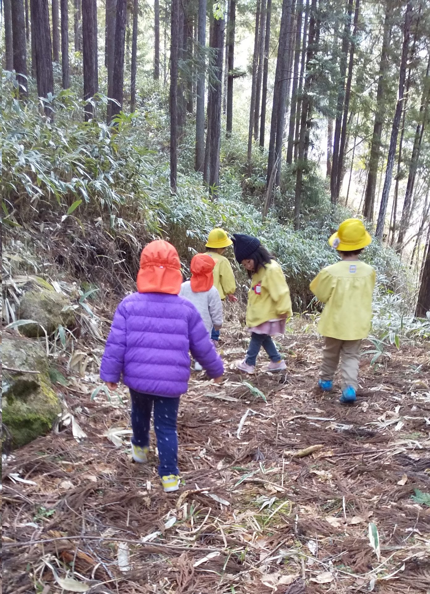 年少さんは初めての森でドキドキもあったけれど、未満児さんに声をかけられ一緒に楽しめました。
