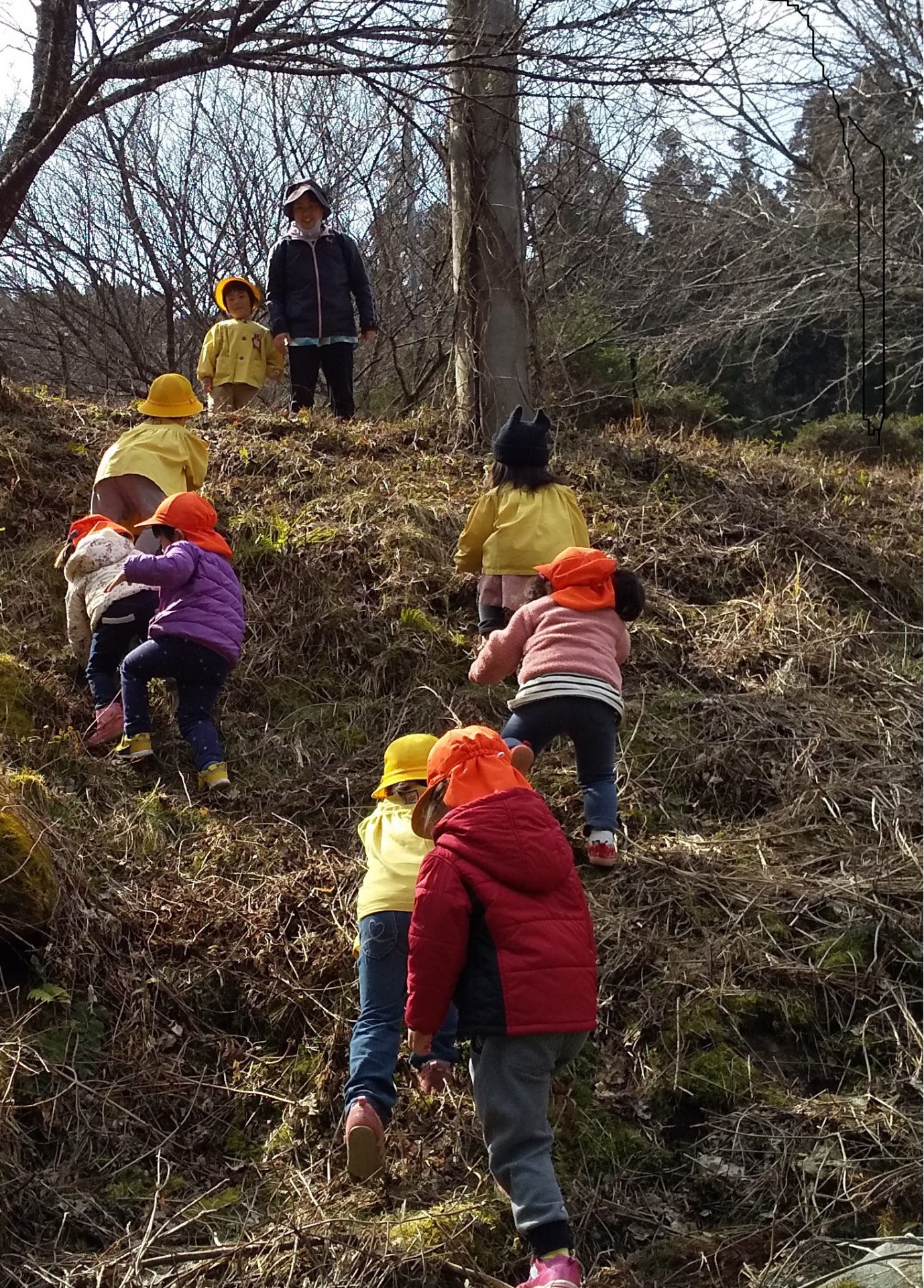 年少さんも未満児(2歳児)さんも競って登って行きます