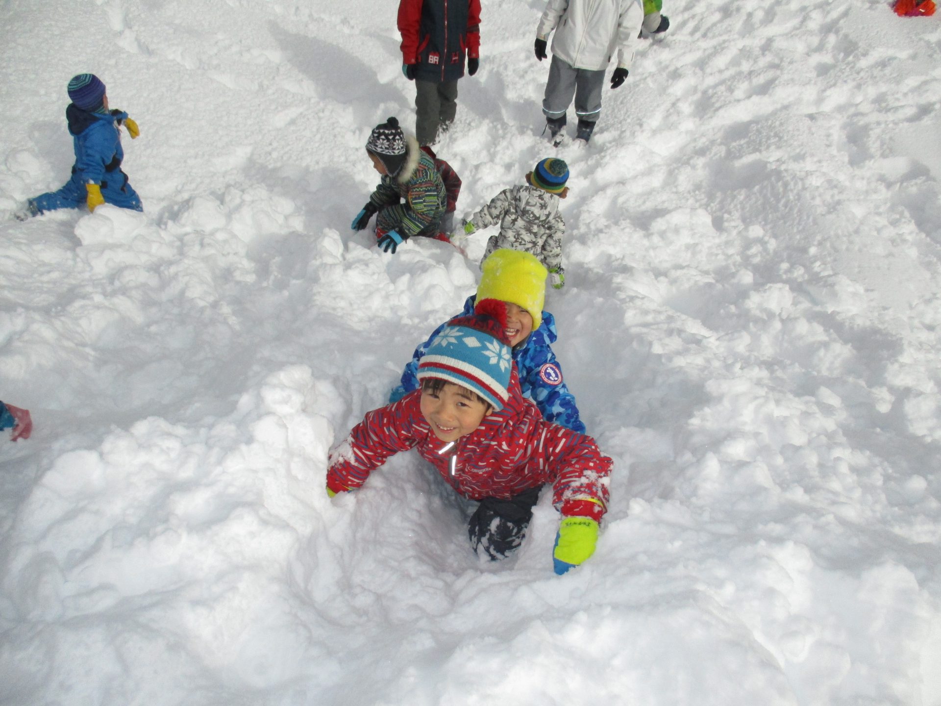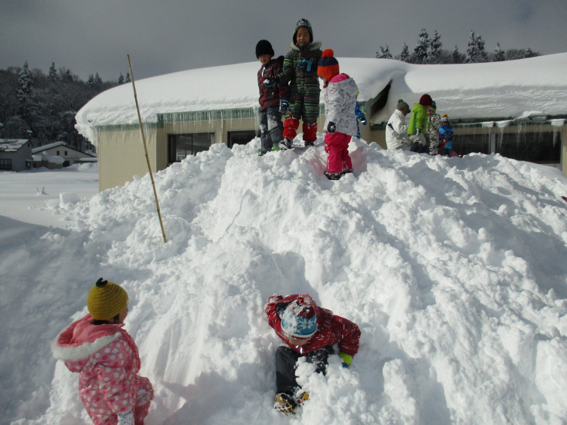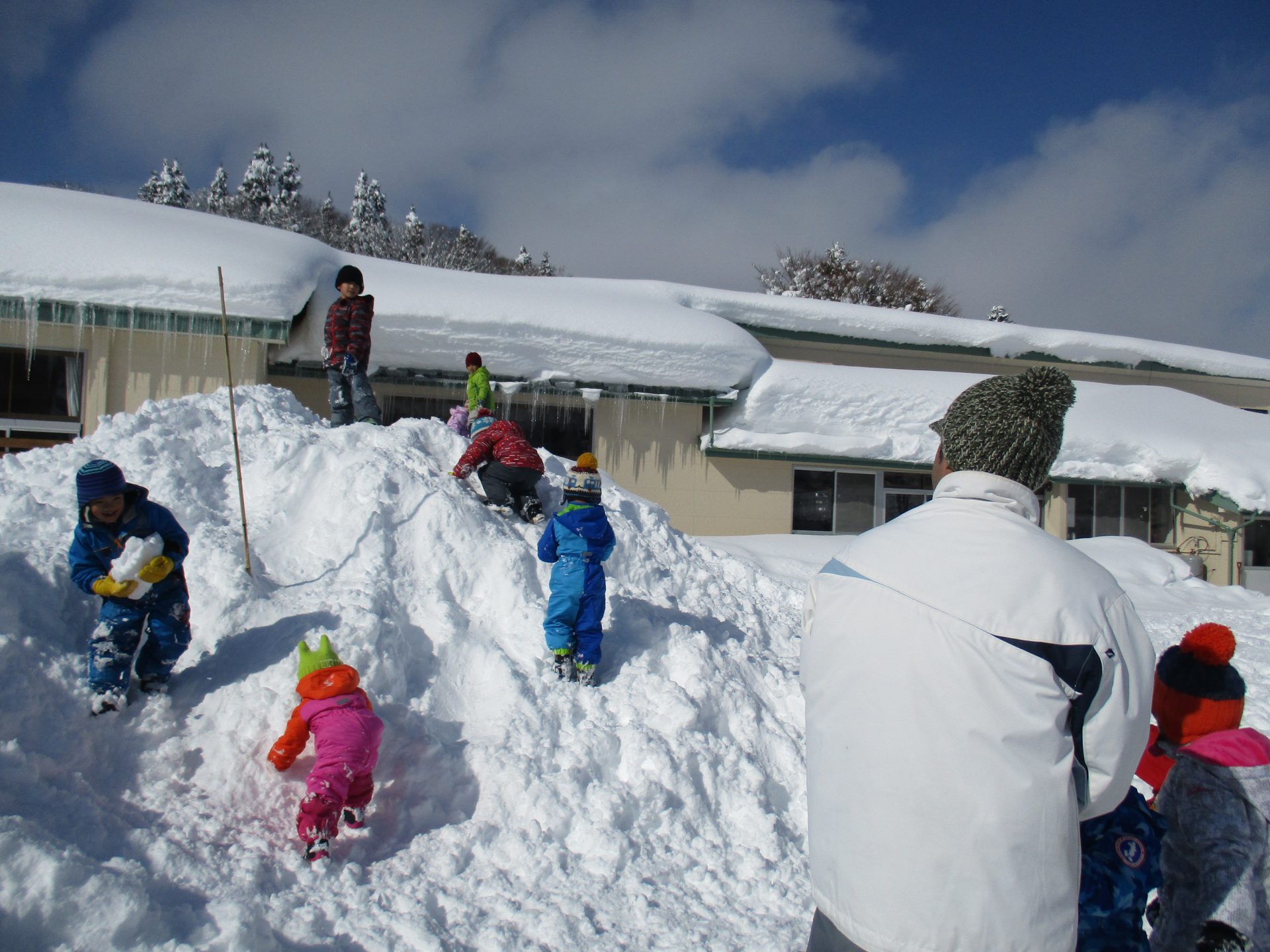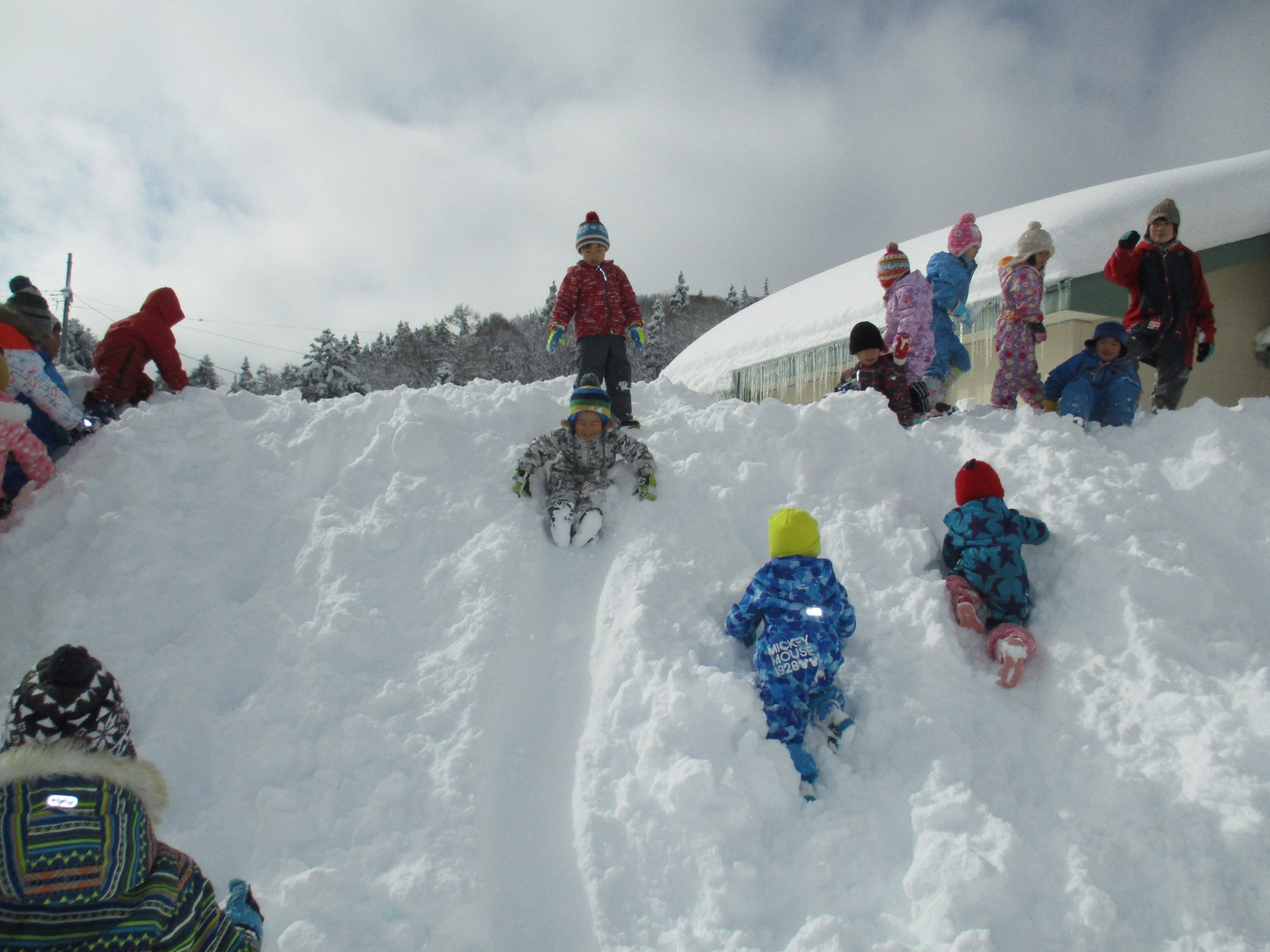 保育園の屋根ほどある高さの山へ上り、お尻滑りを楽しんでいました。